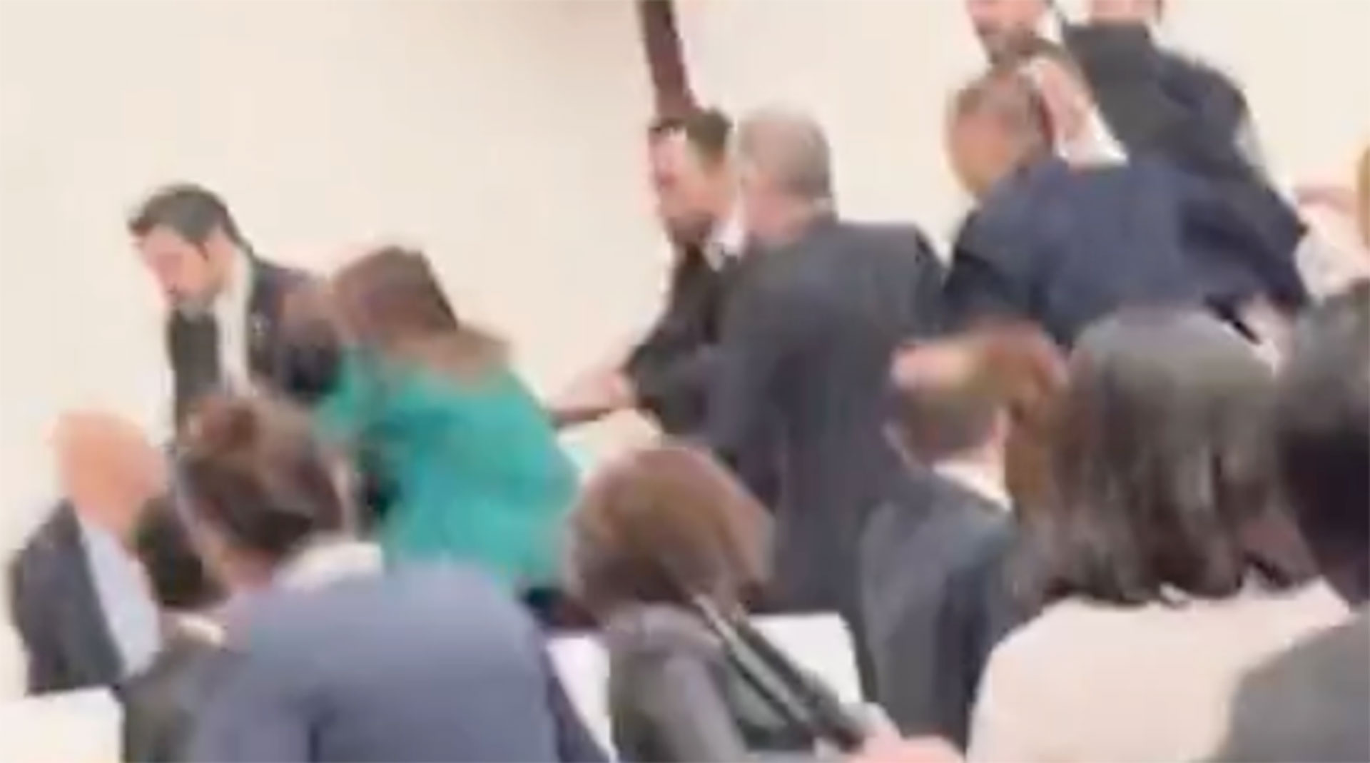 Η κατάσταση βγήκε εκτός ελέγχου και ο αναπληρωτής πρόεδρος Μπεκίρ Μποζντάγκ διέκοψε τη συνεδρίαση λόγω της έντασης.