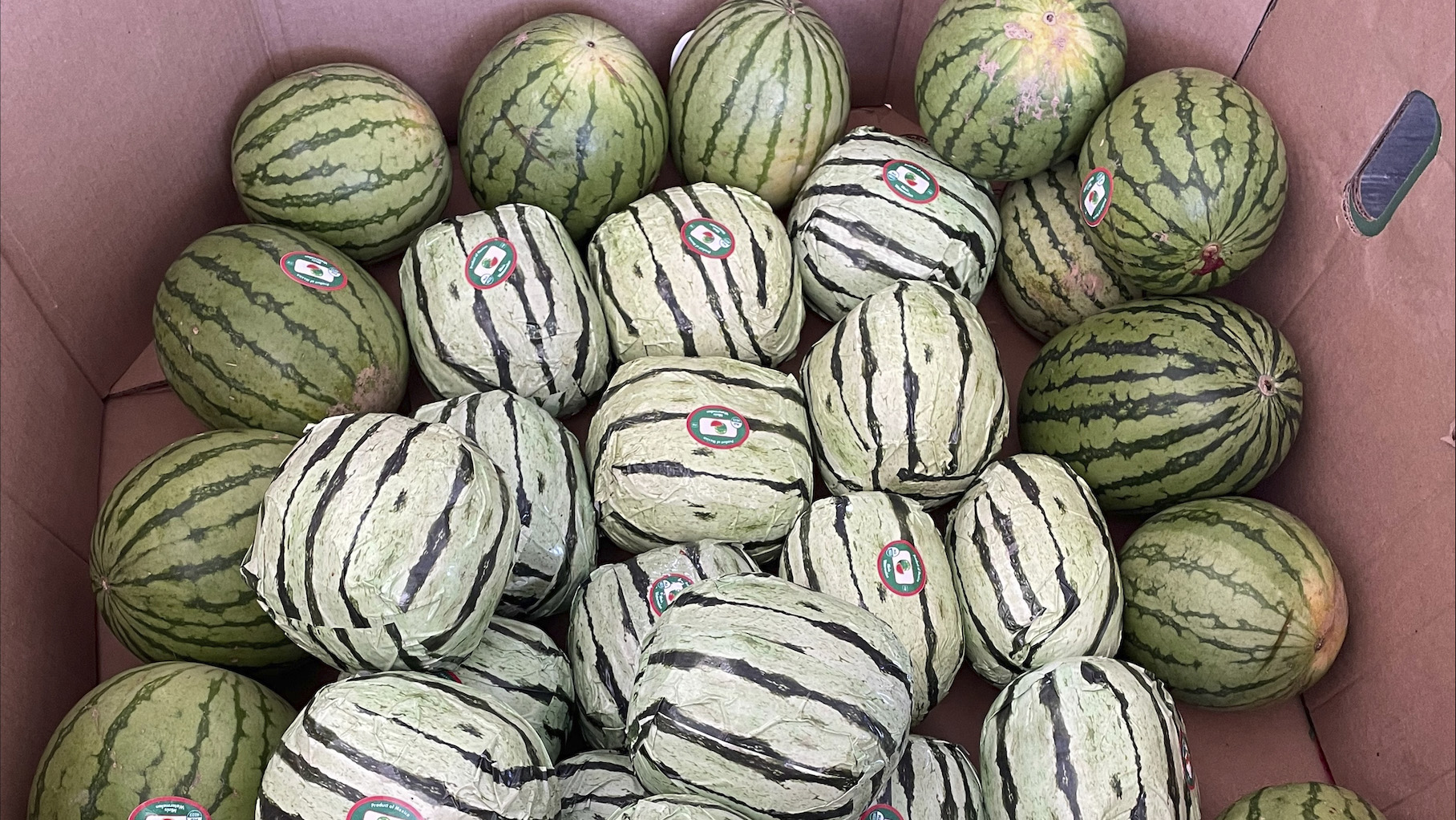Οι υπεύθυνοι εντόπισαν 1.220 συσκευασίες με πλαστικό περιτύλιγμα στα χρώματα του καρπουζιού ανάμεσα σε πραγματικά καρπούζια, τις οποίες είχαν «φυτέψει» διάσπαρτα οι διακινητές ώστε να προκαλέσουν σύγχυση στους ελεγκτές.