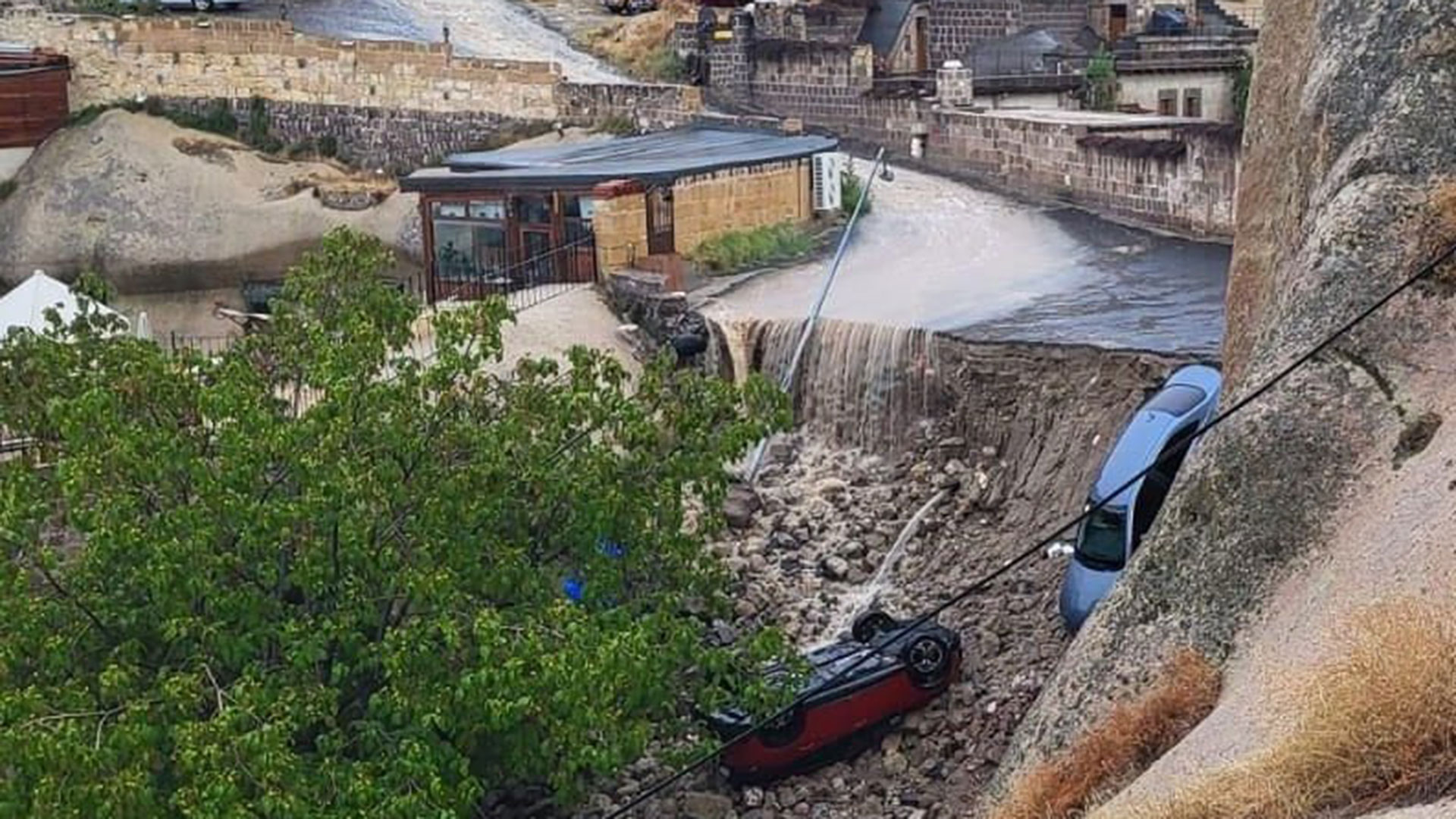 📍Türkiye’nin turizm yöresi Kapadokya’yı sel vurdu, Peribacalarından kaya parçaları koptu.