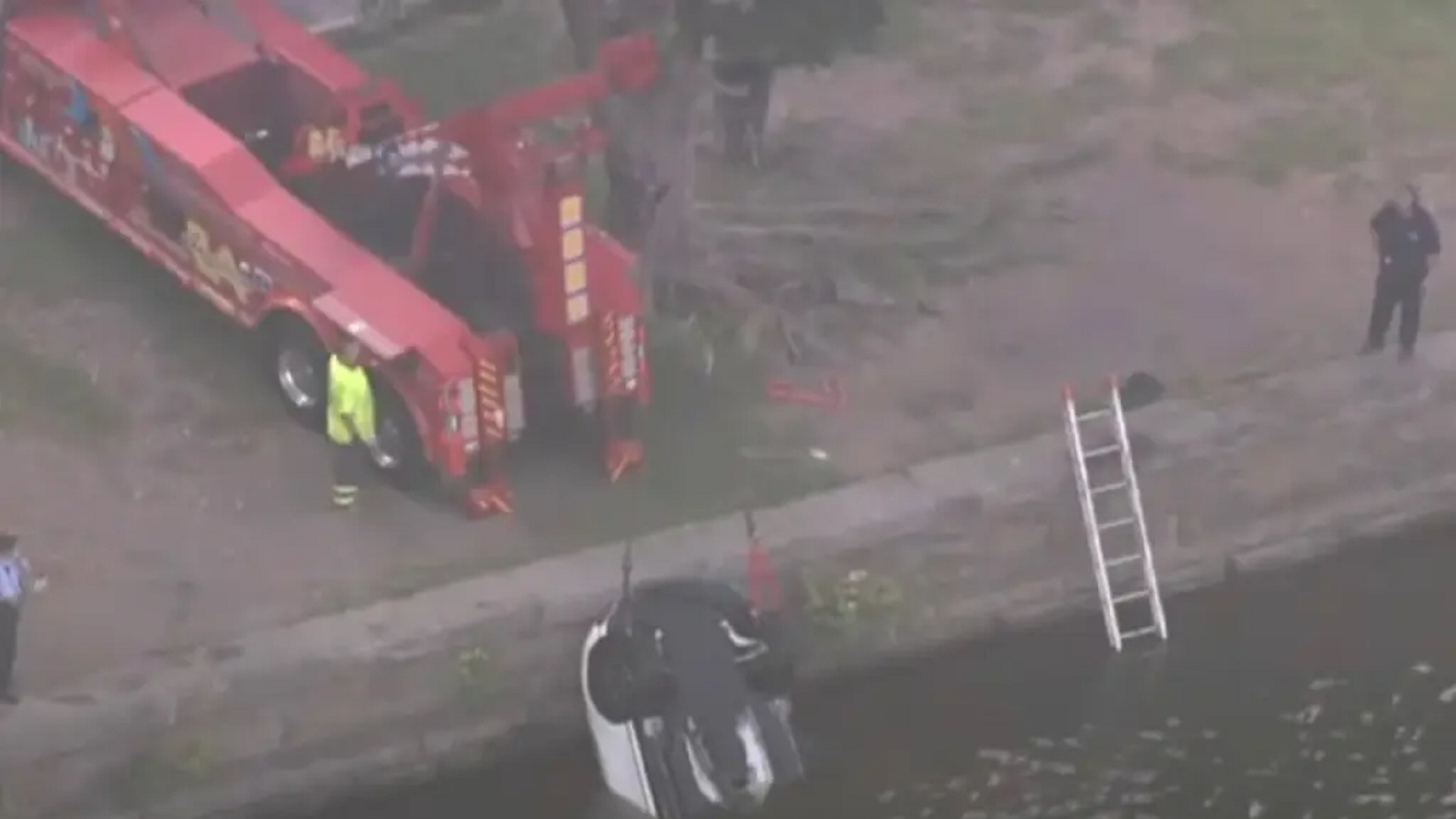 Οπως ανέφερε εκπρόσωπος της αστυνομίας στο αμερικανικό τηλεοπτικό δίκτυο NBC, το όχημα χτύπησε στο κράσπεδο, σηκώθηκε στον αέρα και έπεσε στο ποτάμι, αλλά ευτυχώς το ζευγάρι που επέβαινε σε αυτό πρόλαβε να βγει και να βουτήξει στα νερά, γλιτώνοντας τα χειρότερα.