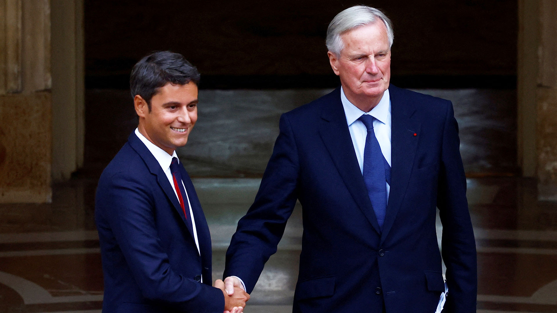ΠΑΡΙΣΙ. Τον Ευρωπαίο πρώην επίτροπο Μισέλ Μπαρνιέ διόρισε χθες στην πρωθυπουργία ο Γάλλος πρόεδρος Εμανουέλ Μακρόν, με την τελετή παράδοσης παραλαβής να πραγματοποιείται στο μέγαρο Ματινιόν. Ο 35χρονος Γκαμπριέλ Ατάλ, ο νεότερος πρωθυπουργός της 5ης Δημοκρατίας, παρέδωσε έτσι την εξουσία στον γηραιότερο κάτοχο του αξιώματος, τον 73χρονο Μπαρνιέ.