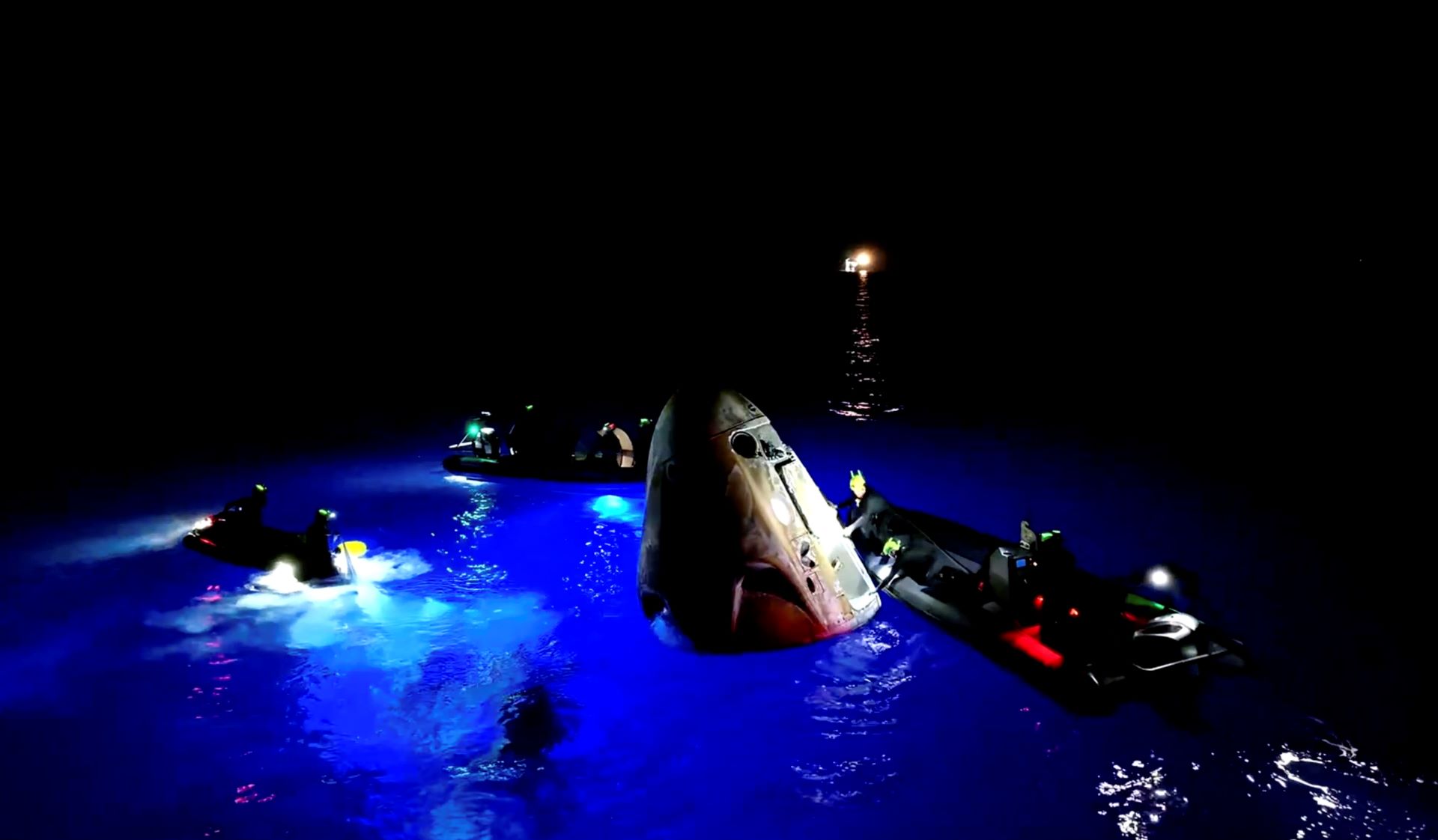 Η κάψουλα που μετέφερε την τετραμελή ομάδα, τον Αϊζάκμαν, τους δύο μηχανικούς της SpaceX και τoν πρώην πρώην πιλότο Thunderbird της αμερικανικής Πολεμικής Αεροπορίας, προσθαλασσώθηκε τα ξημερώματα στον Κόλπο του Μεξικού.