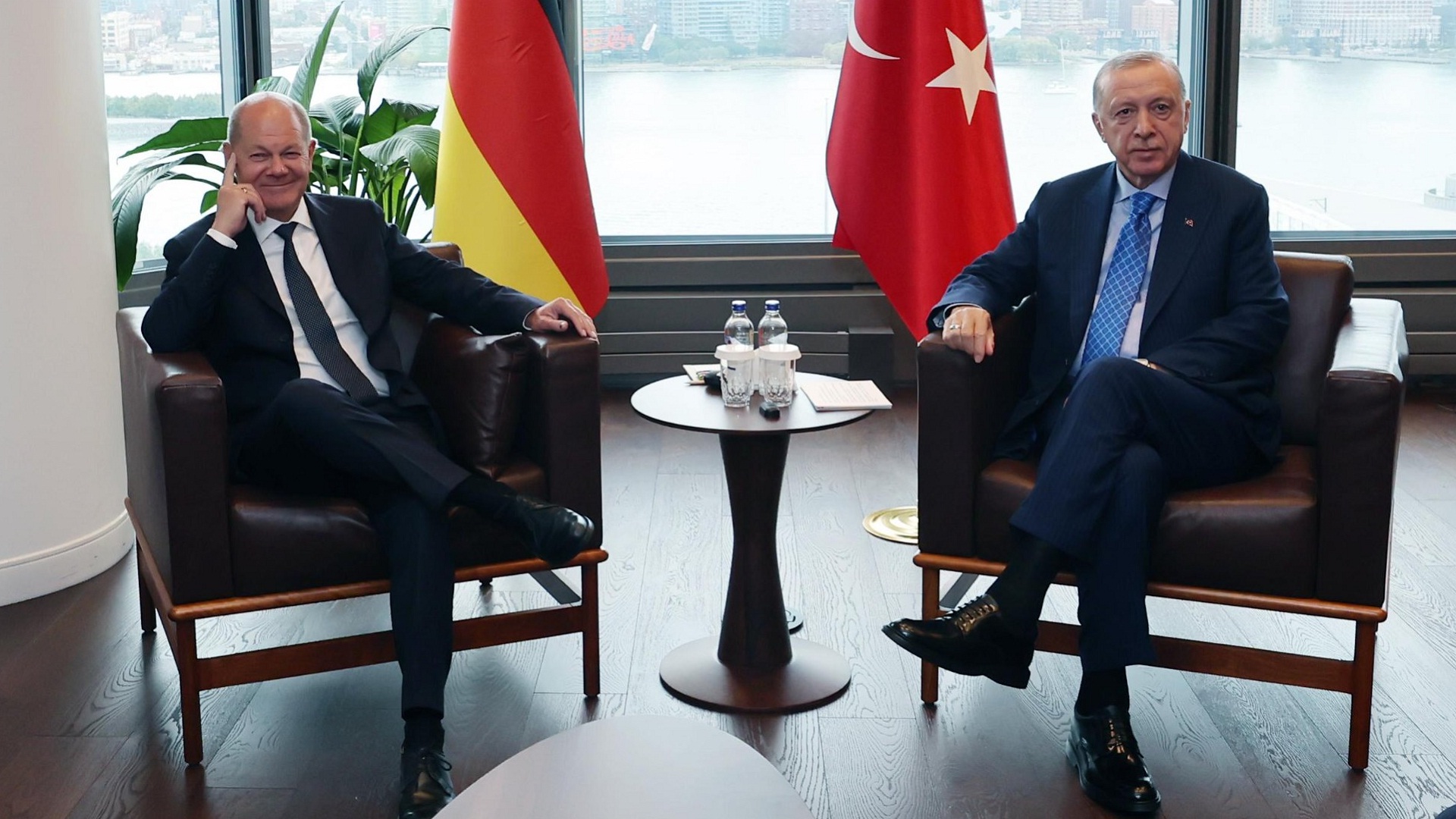 Ο πρόεδρος της Τουρκίας Ρετζέπ Ταγίπ Ερντογάν συναντήθηκε χθες, Δευτέρα, με τον καγκελάριο της Γερμανίας Ολαφ Σολτς στη Νέα Υόρκη, όπου βρίσκονται οι δύο ηγέτες στο πλαίσιο των εργασιών της 79ης Γενικής Συνέλευσης του Οργανισμού Ηνωμένων Εθνών.