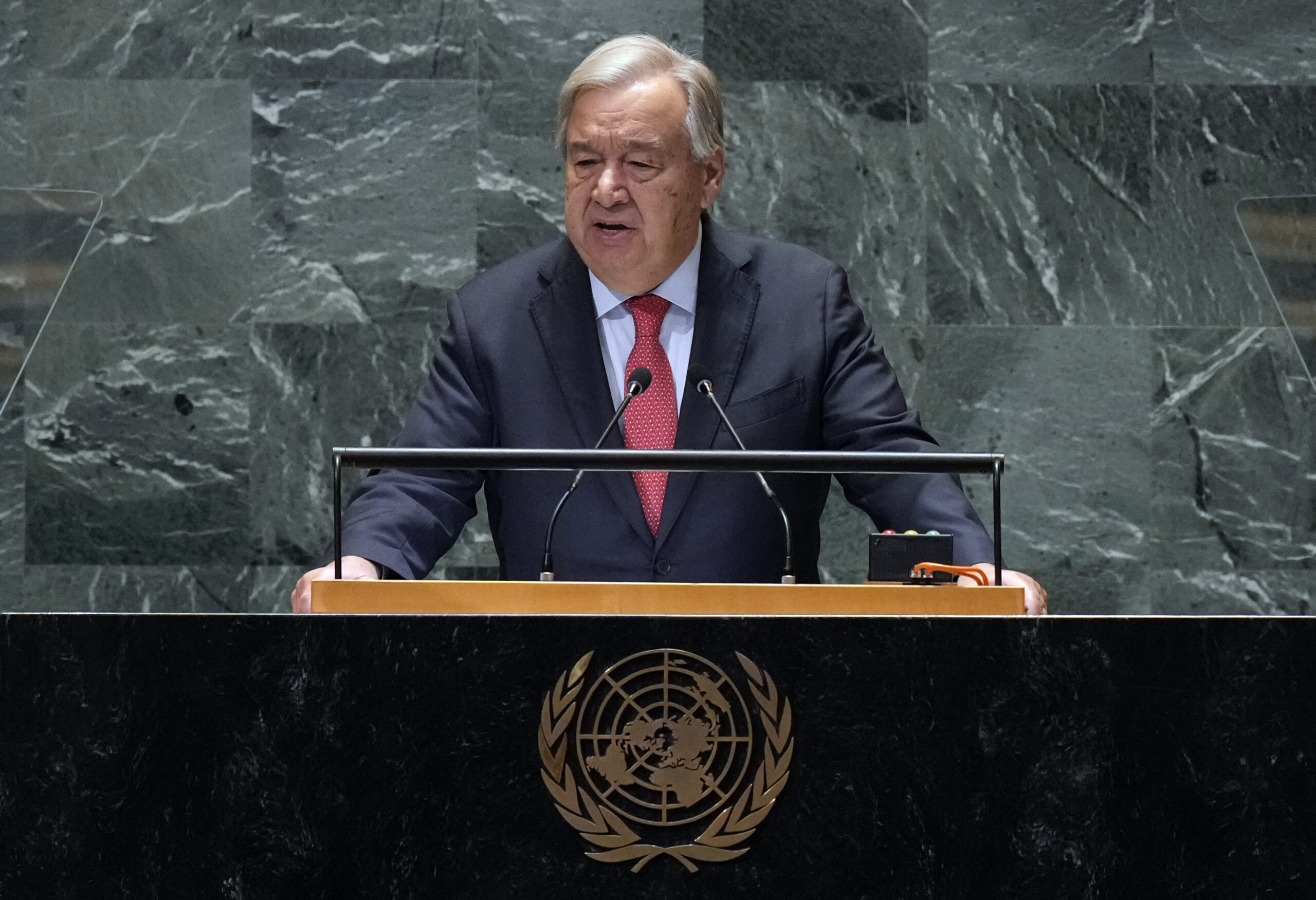 Στην ομιλία του, ο γενικός γραμματέας συνόψισε ως «αβίωτη» την κατάσταση του κόσμου σήμερα, αλλά επέμεινε ότι τα προβλήματα θα μπορούσαν να επιλυθούν. «Οι γεωπολιτικές διαιρέσεις βαθαίνουν. Ο πλανήτης συνεχίζει να θερμαίνεται. Οι πόλεμοι μαίνονται, χωρίς να υπάρχει κάποια ένδειξη για το πώς θα τελειώσουν. Και τα πυρηνικά δόγματα και τα νέα όπλα ρίχνουν βαριά σκιά. Οδεύουμε προς το αδιανόητο – μια πυριτιδαποθήκη που υπάρχει κίνδυνος να καταποντίσει τον κόσμο», είπε.
