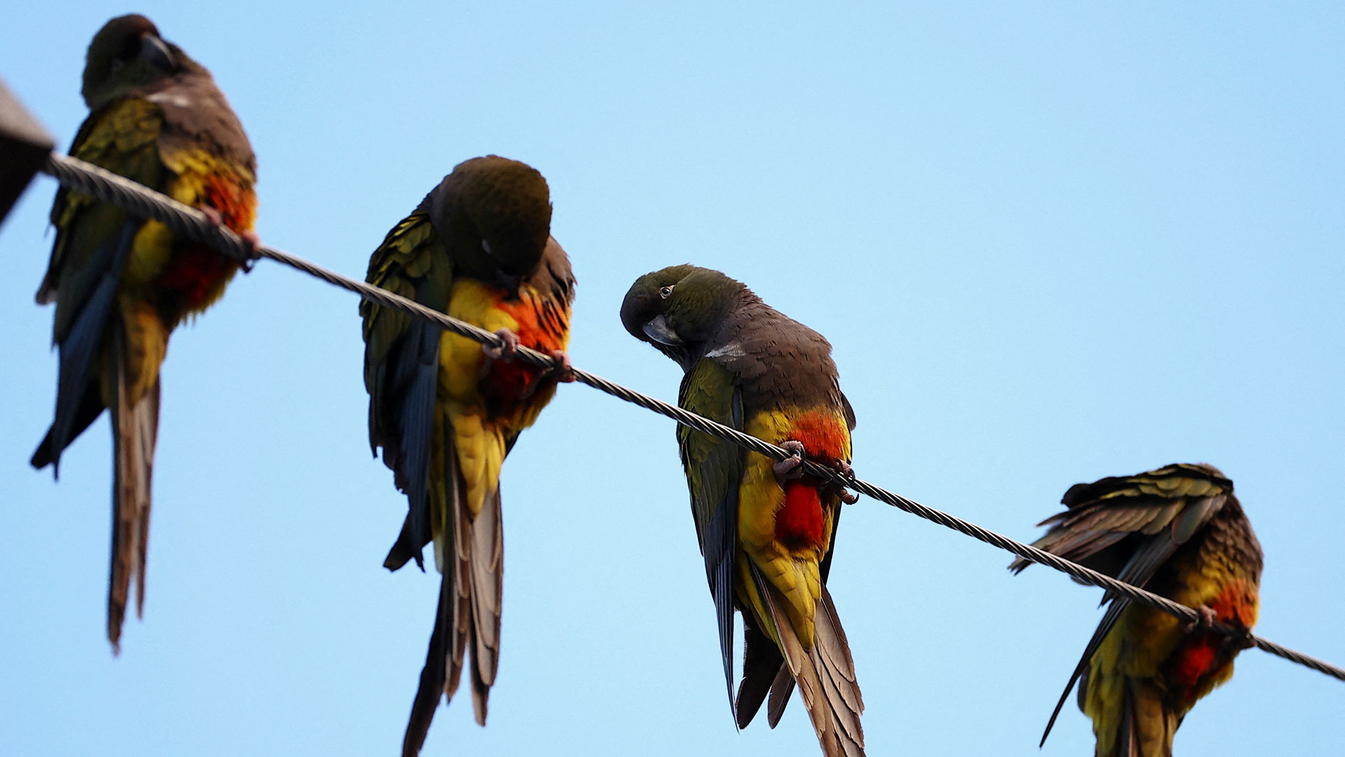 In #Argentina, the small town of Hilario Ascasubi is suffering from a parrot infestation. The birds are attacking the town because of deforestation. They have already occupied wires, trees, and the roofs of houses. The locals are terrified.