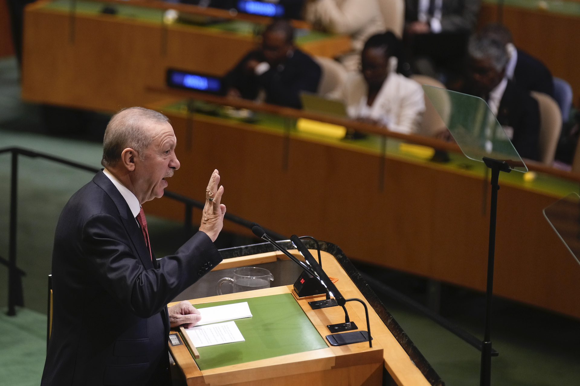 Ο Τούρκος πρόεδρος δήλωσε, μεταξύ άλλων, τα ακόλουθα: «Η κυβέρνηση του Ισραήλ, που προχωράει με τη θεωρία της γης της επαγγελίας και με θρησκευτικό φανατισμό, μετά την Παλαιστίνη και τον Λίβανο, το λέω ξεκάθαρα θα στοχεύσει τα εδάφη της δικής μας πατρίδας. Ολοι οι υπολογισμοί γίνονται σύμφωνα με αυτό. Αυτό δεν καταλαβαίνουν κάποιοι φίλοι του Ισραήλ που βρίσκονται εντός της Τουρκίας, κάποιοι υποστηρικτές του σιωνισμού, κάποιοι πληρωμένα πιόνια του σιωνισμού […] Ο Νετανιάχου περιλαμβάνει την Ανατολία στα όνειρά του. Ακολουθεί μια ουτοπία και αυτή την αποκαλύπτει με διάφορες ευκαιρίες. Η απόσταση από την περιοχή Γιάιλανταγ που είναι στα σύνορά μας με τη Συρία μέχρι και τον Λίβανο είναι 170 χιλιόμετρα. Η Τουρκία με αυτοκίνητο απέχει με τον Λίβανο μόλις 2,5 ώρες. Η απόσταση της Αντιόχειας από τη Γάζα είναι όση η απόσταση της Αγκυρας από το Αϊδίνιο. Δηλαδή η κατοχἠ, η τρομοκρατία, η επιθετικότητα είναι ακριβώς δίπλα μας. Η επιθετικότητα του Ισραήλ βλέπουμε από τις δηλώσεις πως περιλαμβάνει και την Τουρκία. Θα συνεχίσουμε να στεκόμαστε απέναντι σε αυτήν την επιθετικότητα και στην κρατική τρομοκρατία με όλα τα μέσα που έχουμε […] Eπαναλαμβάνω πως όποιο κι αν είναι το κόστος, η Τουρκία θα στέκεται ενάντια στο Ισραήλ…»
