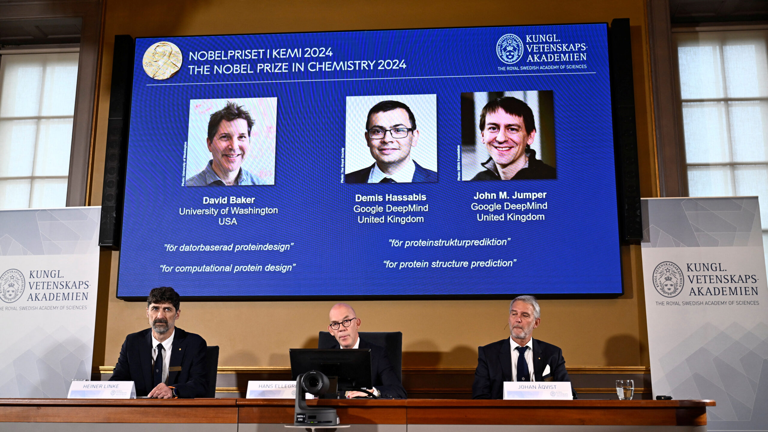 The Royal Swedish Academy of Sciences has decided to award the 2024 #NobelPrize in Chemistry with one half to David Baker “for computational protein design” and the other half jointly to Demis Hassabis and John M. Jumper “for protein structure prediction.” pic.twitter.com/gYrdFFcD4T— The Nobel Prize (@NobelPrize) October 9, 2024