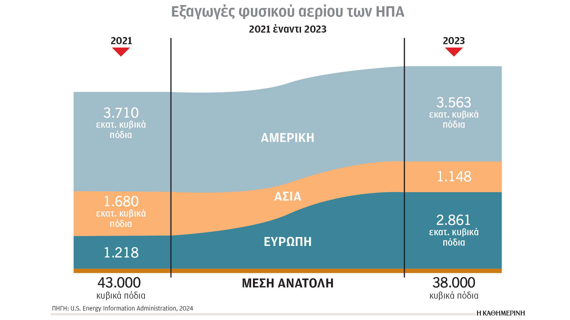 Η ρωσική εισβολή στην Ουκρανία προκάλεσε αύξηση των εξαγωγών φυσικού αερίου από τις ΗΠΑ κατά 14%. Στην Ευρώπη, οι αμερικανικές εξαγωγές LNG υπερδιπλασιάστηκαν. Σε Γαλλία και Ολλανδία διπλάσιες, σε Ιταλία 5πλάσιες και σε Βέλγιο 16πλάσιες! Η Γερμανία, με μηδενικές εισαγωγές από τις ΗΠΑ το 2021, είναι σήμερα (2023) ο 9ος υψηλότερος εισαγωγέας. Η ενεργειακή ασφάλεια είναι το ζητούμενο για την Ευρώπη. Η πορεία προς την απεξάρτησή της από το ρωσικό φυσικό αέριο βρίσκει αντικατάσταση στις εισαγωγές από ΗΠΑ.