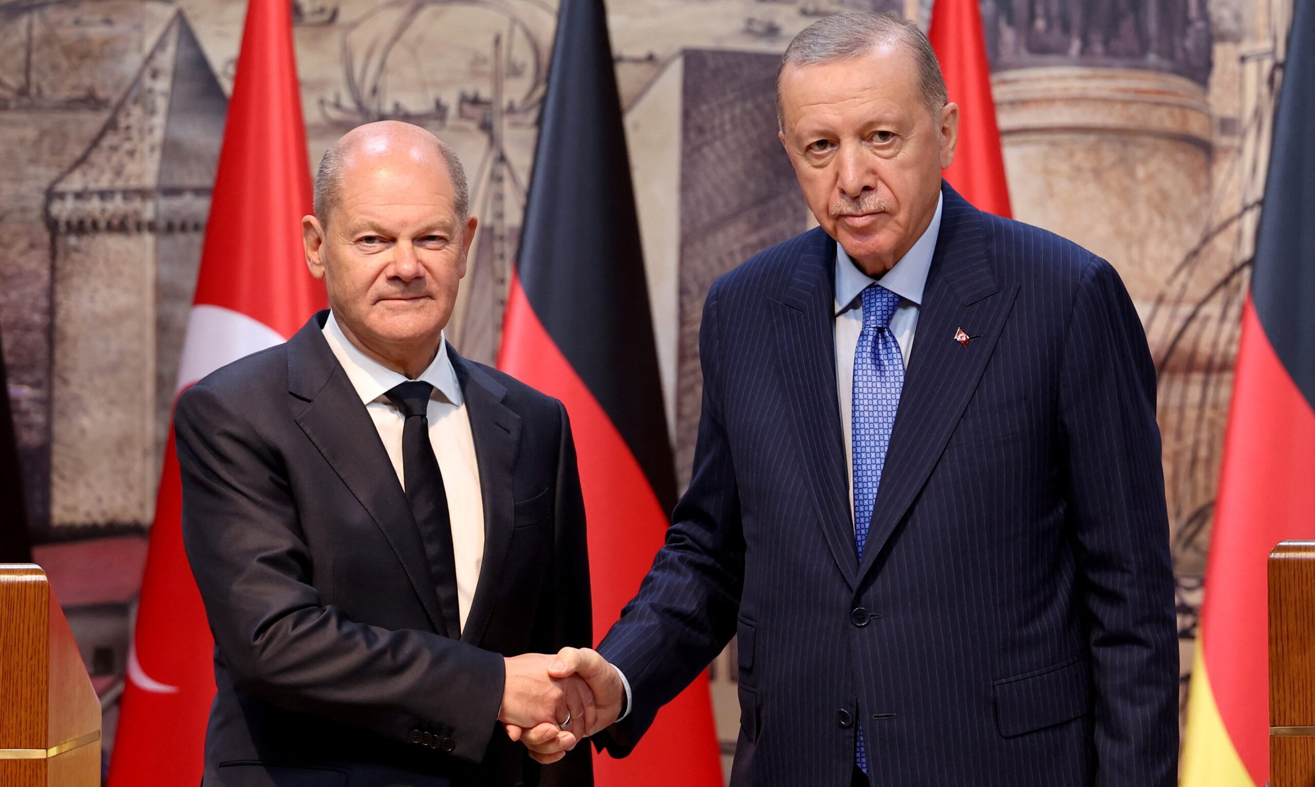 Για το ίδιο θέμα ο Ταγίπ Ερντογάν απάντησε: «Στις προμήθειες των προϊόντων της αμυντικής βιομηχανίας, επιθυμούμε να αφήσουμε πίσω μας ορισμένα από τα προβλήματα του παρελθόντος και να αναπτύξουμε τη συνεργασία μας. Θέλω να εκφράσω σήμερα για μία ακόμη φορά ότι εκτιμώ τις προσπάθειες στο θέμα αυτό του αγαπητού μου φίλου Σολτς».