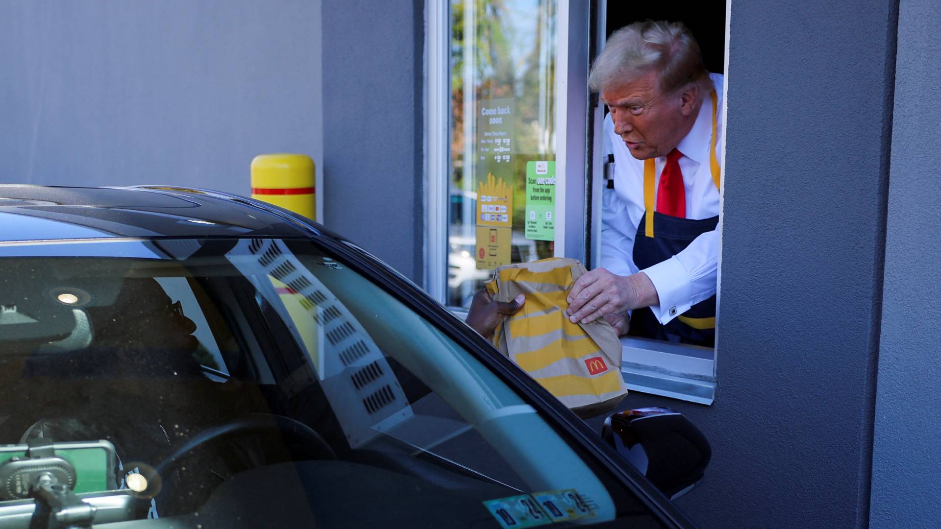 «Μου αρέσει αυτή η δουλειά», είπε ο Τραμπ, του οποίου η αγάπη για το φαστ φουντ είναι γνωστή. «Περνάω πολύ καλά εδώ».