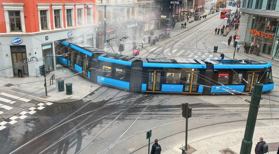 Εικόνες από το σημείο που δημοσίευσαν τα νορβηγικά μέσα ενημέρωσης έδειχναν ένα μπλε τραμ που είχε εισχωρήσει σε κατάστημα ηλεκτρονικών υπολογιστών στο κέντρο της νορβηγικής πρωτεύουσας.