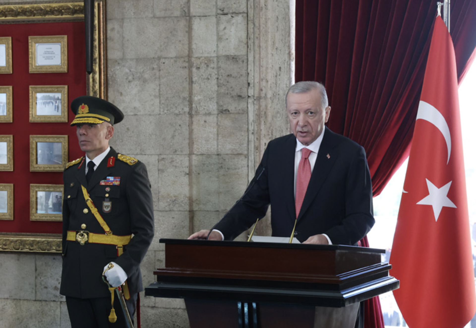 «Λαμβάνουμε όλων των ειδών τα μέτρα, για να προστατεύσουμε το μέλλον της χώρας μας και την ασφάλεια του έθνους μας σε μια περίοδο κατά την οποία τα σύνορα στην περιοχή μας επιδιώκεται να χαραχθούν ξανά με αίμα και δάκρυα, όπως συνέβαινε πριν από έναν αιώνα», προσέθεσε ο Τούρκος ηγέτης.