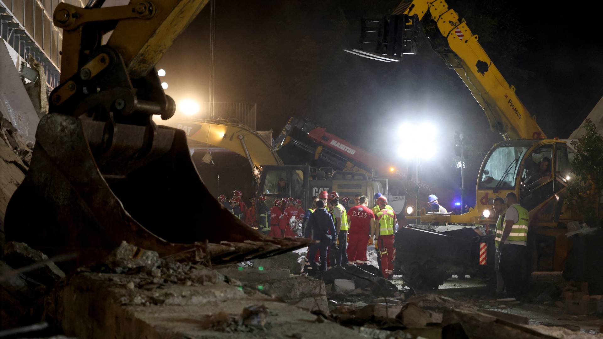 Στο σημείο βρίσκονται γερανοί και βαρέα οχήματα για να απομακρύνουν τα βαριά συντρίμμια της οροφής, ενώ δεκάδες διασώστες και εργάτες κατασκευών αναζητούν εγκλωβισμένους.