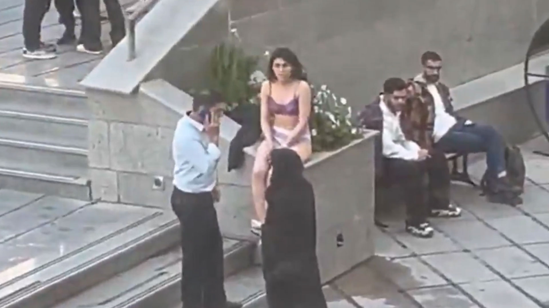 Σε βίντεο που έγιναν σύντομα viral, η γυναίκα διακρίνεται να περπατάει αργά μπροστά από το πανεπιστήμιο φορώντας τα εσώρουχά της, προτού άνδρες με πολιτικά τη μεταφέρουν δια της βίας σε ένα αυτοκίνητο.