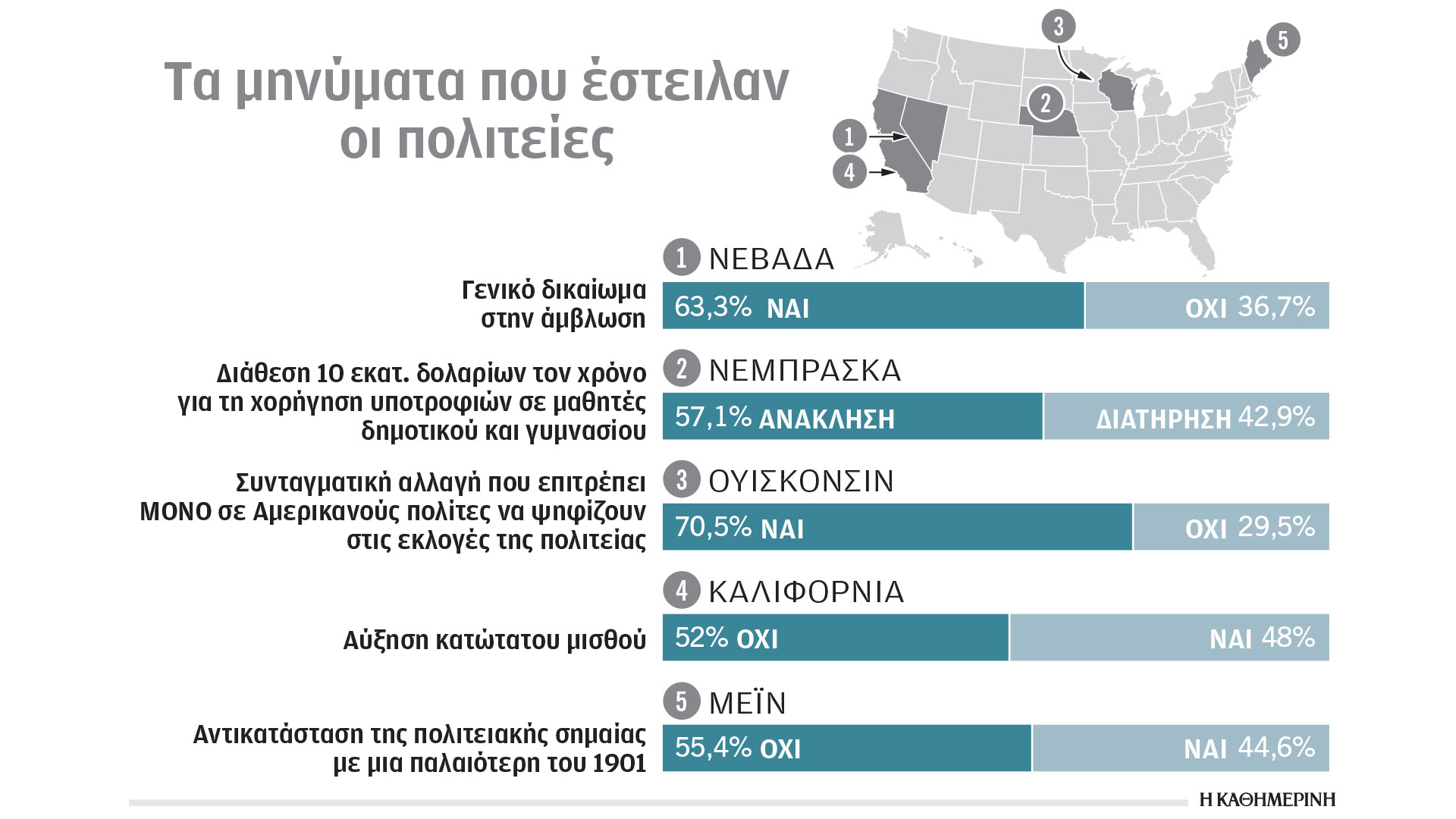 Το εκλογικό σώμα ορισμένων πολιτειών κλήθηκε την Τρίτη να ψηφίσει και για μια σειρά από εσωτερικά ζητήματα που τέθηκαν σε δημοψήφισμα.