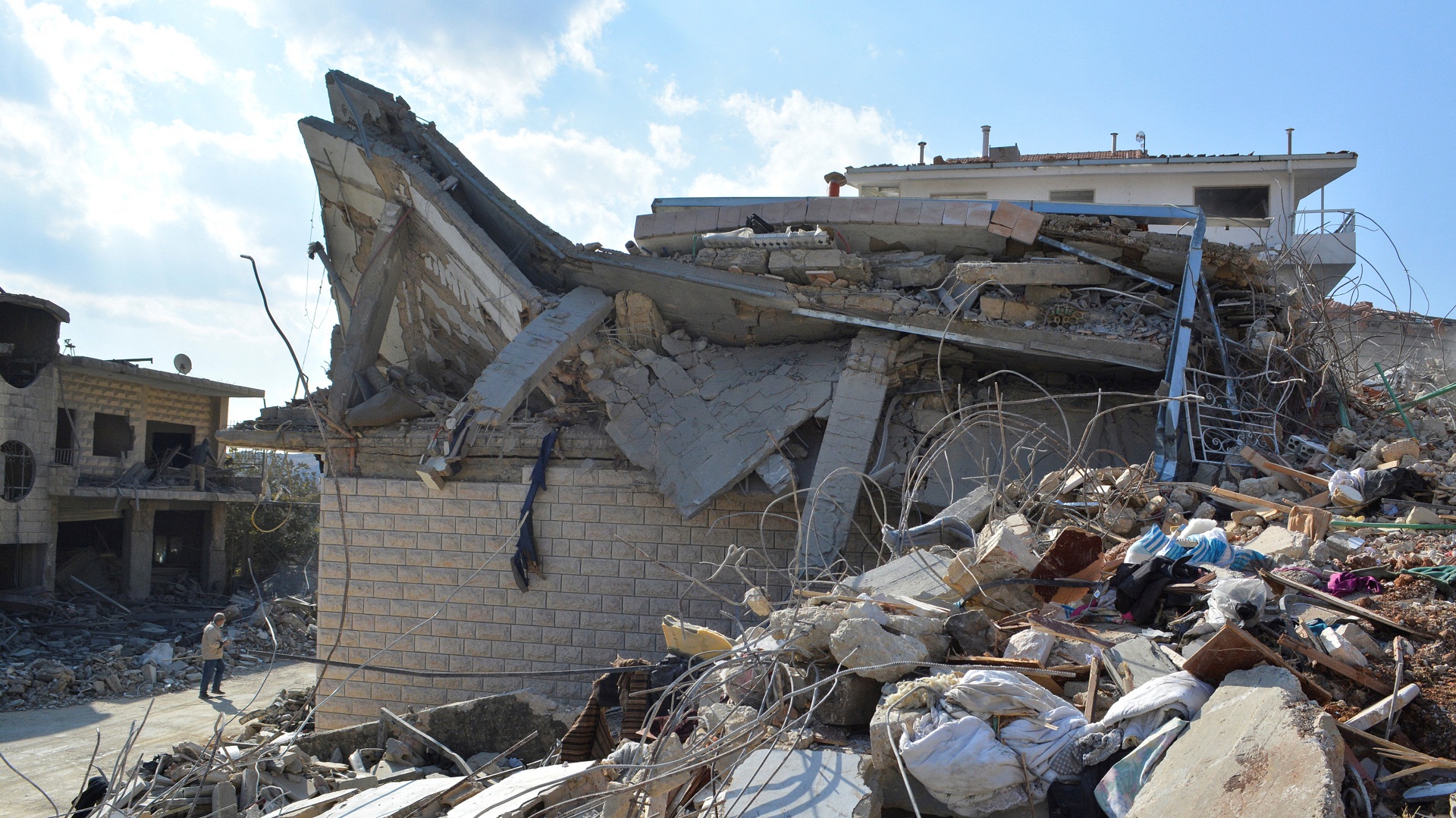 Οπτικό υλικό του Γαλλικού Πρακτορείου δείχνει σωστικά συνεργεία να ψάχνουν με γυμνά χέρια στα συντρίμμια κτιρίου εντελώς ισοπεδωμένου, ενώ βαρύ μηχάνημα έργου, εκσκαφέας, απομακρύνει κομμάτια μπετόν.