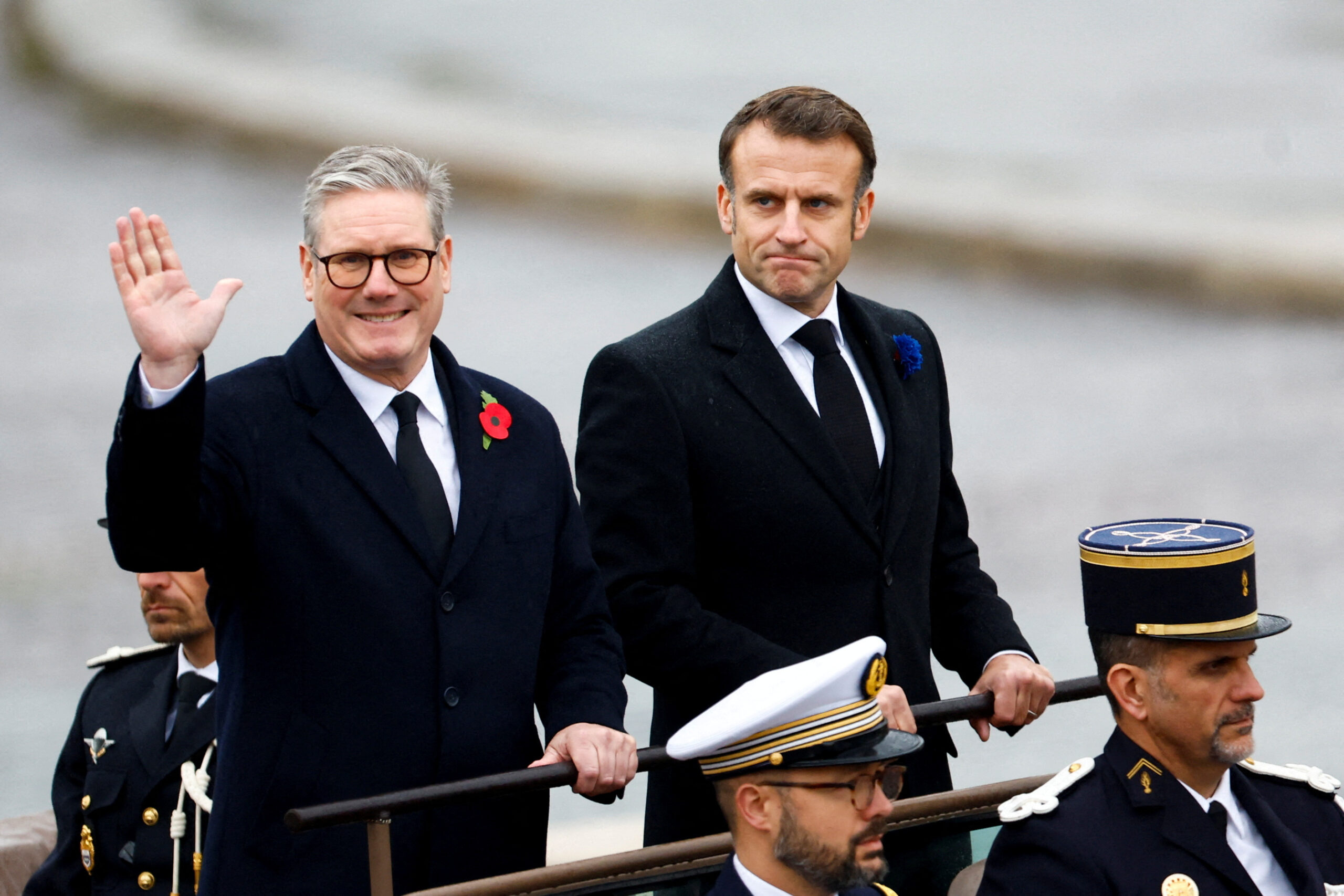 Ο Μακρόν και ο Στάρμερ συμμετείχαν νωρίτερα σε εορταστικές εκδηλώσεις για την Ημέρα Ανακωχής στον Τάφο του Αγνωστου Στρατιώτη κάτω από την Αψίδα του Θριάμβου σήμερα, ενώ στις συνομιλίες τους επρόκειτο να συζητήσουν επίσης για την ανθρωπιστική κατάσταση στη Γάζα, όπως ανακοίνωσε η Ντάουνινγκ Στριτ.