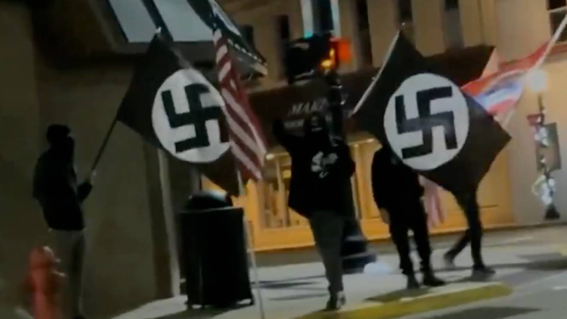 “Hail Hitler” and “Hail Trump” – People wave Nazi flags outside theatre presenting Jewish play, “The Diary of Anne Frank,” in Michigan. pic.twitter.com/bjC2Z1e4Ak