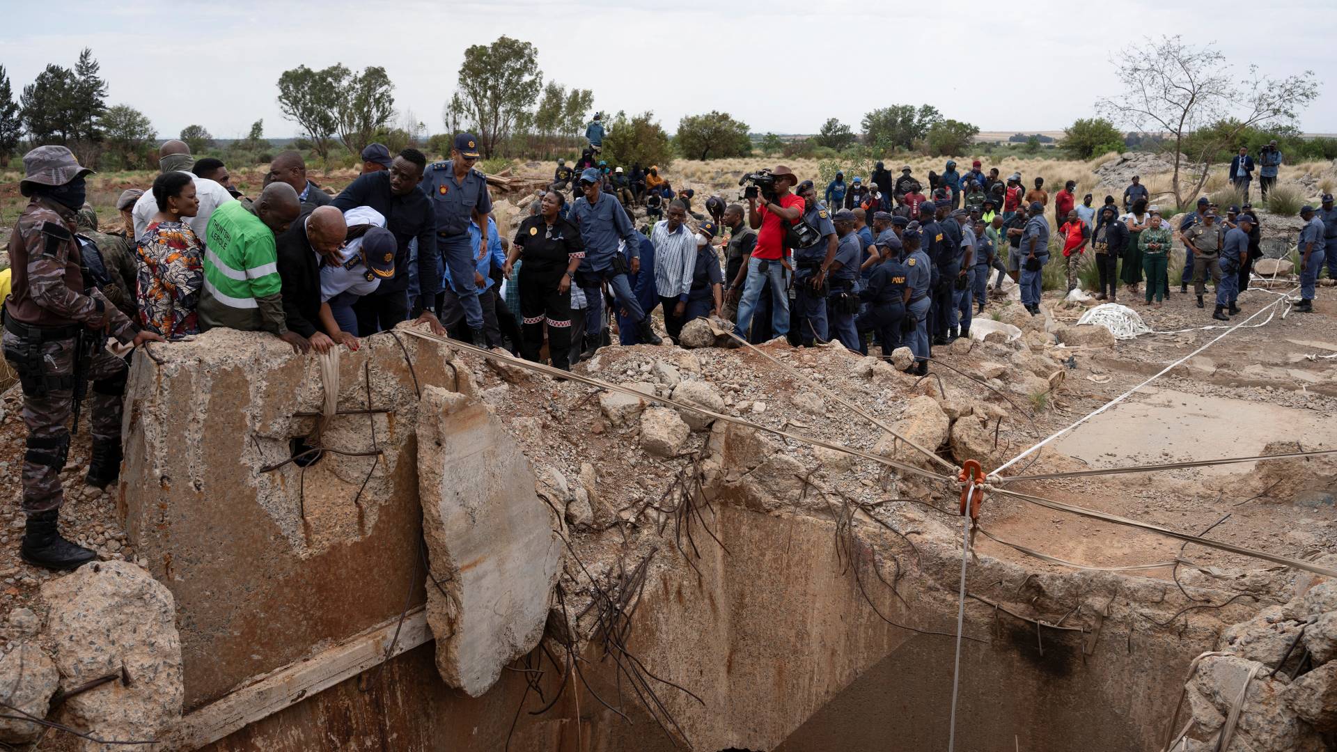 Απελπισμένοι συγγενείς εκατοντάδων ανθρακωρύχων, οι οποίοι εγκλωβίστηκαν κάτω από τη γη σε ένα ανεκμετάλλευτο φρεάτιο ορυχείου στη Νότια Αφρική, περιμένουν τους διασώστες να βοηθήσουν τους δικούς τους να επιστρέψουν στην επιφάνεια με ασφάλεια.