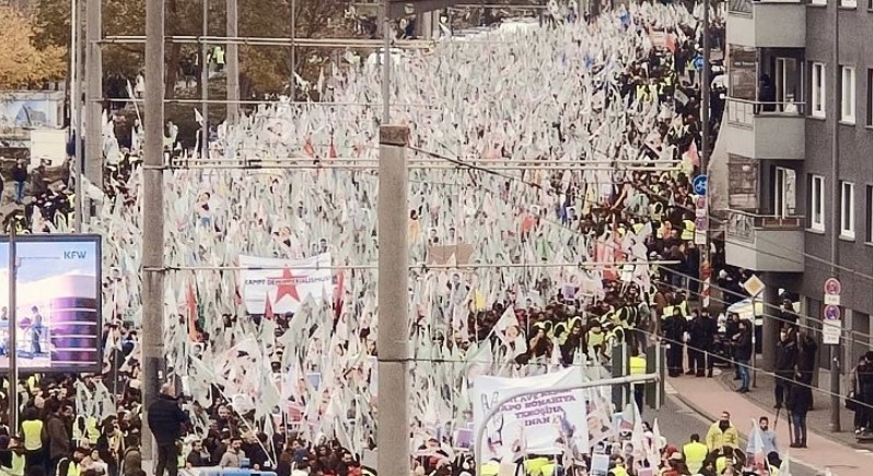 Σήμερα το απόγευμα, διαδηλωτές έκαναν πορεία στο κέντρο της Κολωνίας, κρατώντας πλακάτ με κύριο σύνθημα «Λευτεριά στον Αμπντουλάχ Οτσαλάν» μαζί με τη φωτογραφία του ιδρυτή και ιστορικού ηγέτη του PKK.