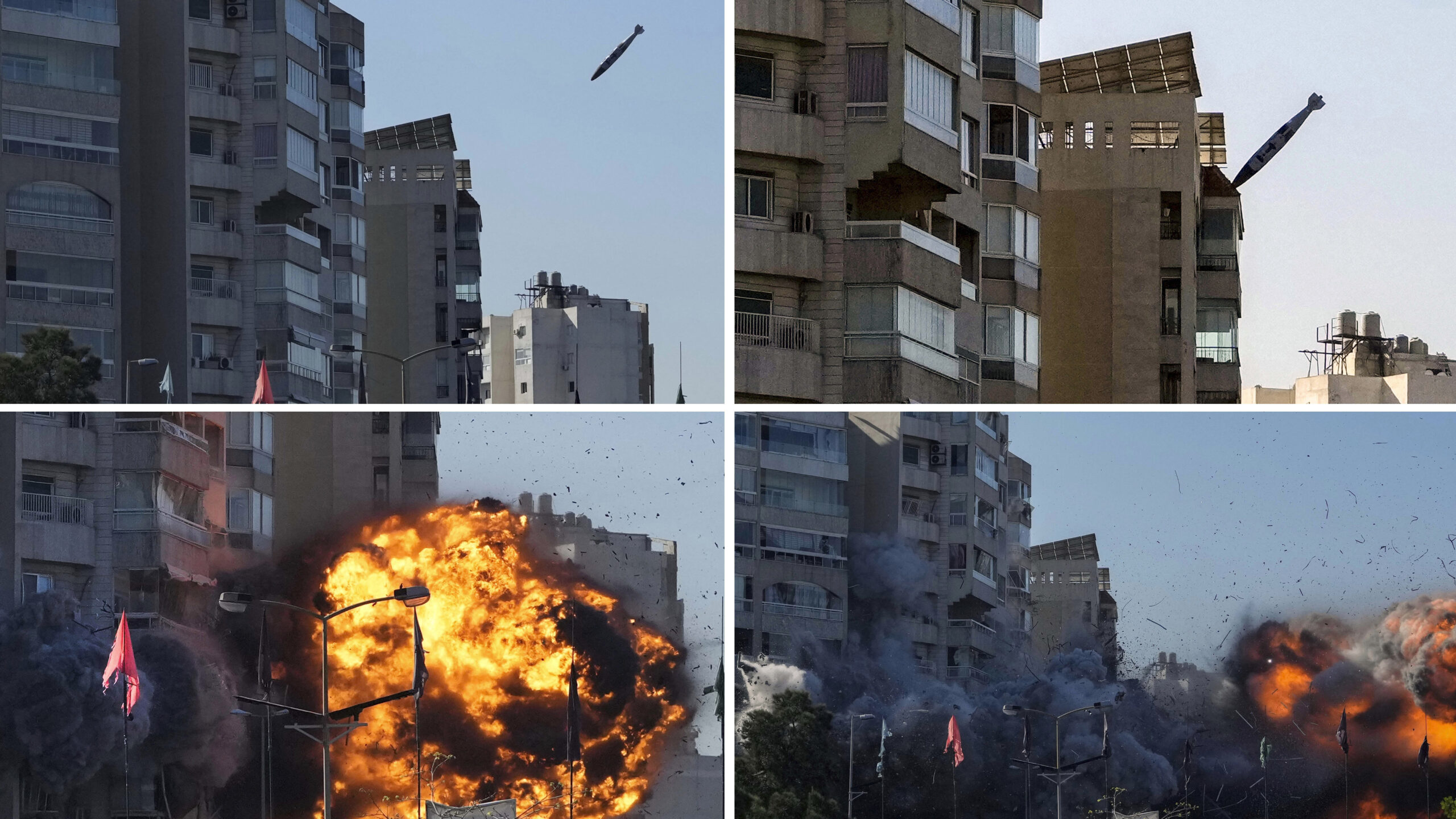 Καθώς η βόμβα κατευθυνόταν στον στόχο της, ένα πολυώροφο κτίριο στην συνοικία Tayouneh της Βηρυτού, εκατοντάδες άνθρωποι βρίσκονται στον δρόμο, μερικές εκατοντάδες μέτρα μακριά, και παρακολουθούν.