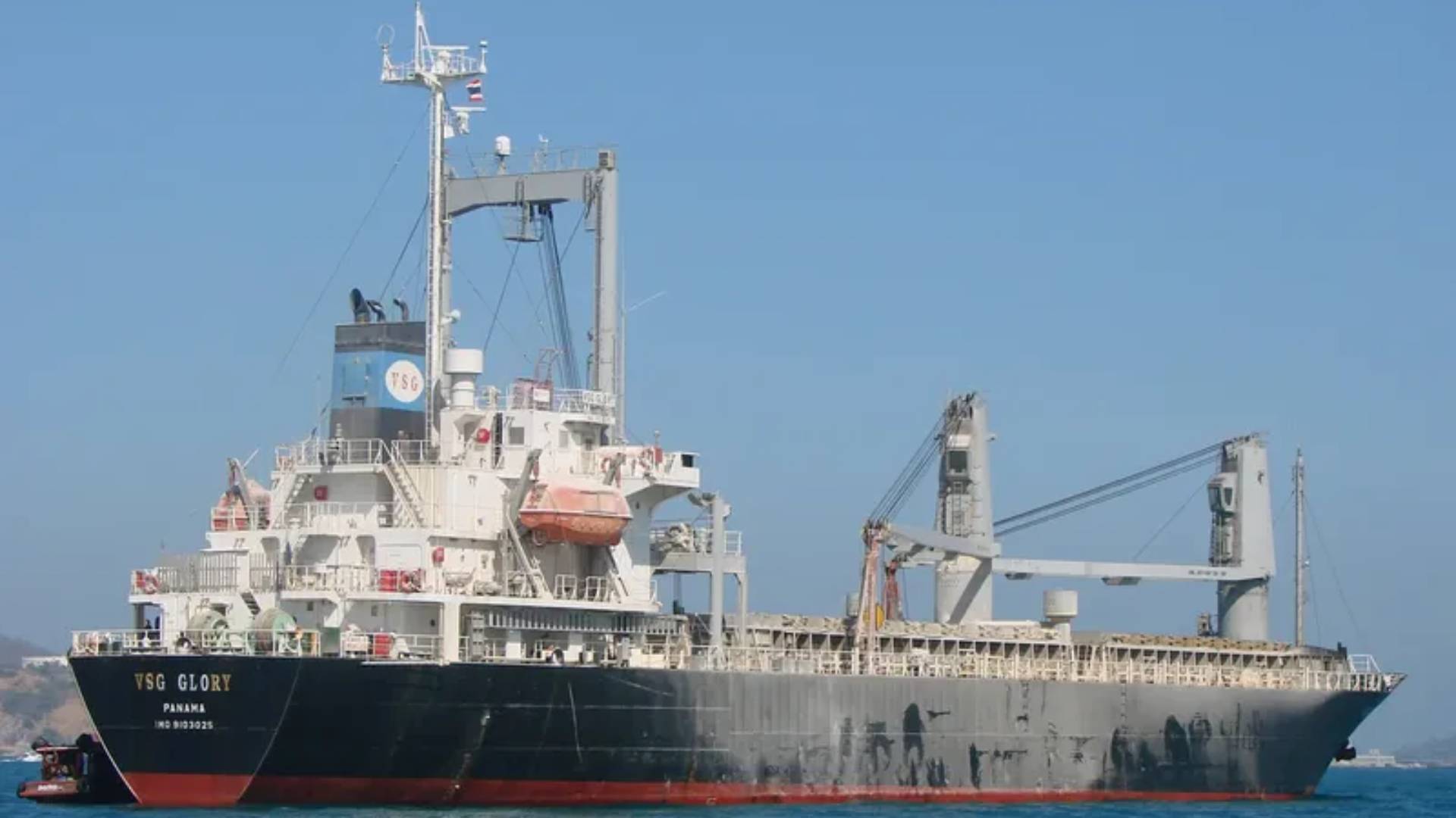 Το πλοίο με σημαία των Νήσων Κομόρες, είχε ακινητοποιηθεί πριν από δέκα ημέρες εξαιτίας μηχανικής βλάβης. Το φορτίο του είναι 4.000 τόνοι πίτουρα, 70 τόνοι μαζούτ και 50 τόνοι ντίζελ. Υπέστη ρήγμα 60 εκατοστών εξαιτίας του οποίου πλημμύρισε το μηχανοστάσιο. Τα 21 μέλη του πληρώματος έχουν απομακρυνθεί με ασφάλεια. Το VSG Glory είχε φύγει από την Υεμένη και πήγαινε στο Σουέζ της Αιγύπτου.