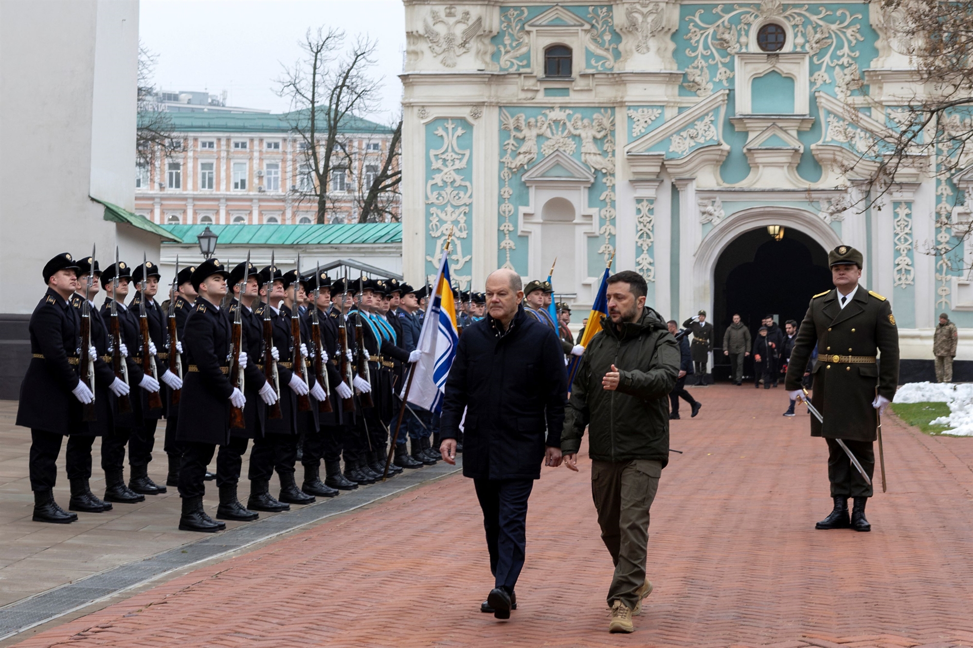 «Η Ρωσία συνεχίζει να πλήττει τις ενεργειακές υποδομές της Ουκρανίας με στοχευμένο και ανηλεή τρόπο. Ο Πούτιν θέλει οι άνθρωποι να παγώσουν. Δεν θα επιτρέψουμε στον κυνικό του υπολογισμό να πετύχει», τόνισε ο Σολτς μιλώντας στο πλευρό του Ζελένσκι. «Η Ρωσία δεν μας χαρίζει τίποτα. Μόνη εγγύηση της ειρήνης είναι η ισχύς των όπλων μας, της διπλωματίας μας και της αλληλεγγύης μας. Παραμένει κρίσιμο η Γερμανία να μην περιορίσει τη στήριξή της το ερχόμενο έτος, συμπεριλαμβανομένης και της οικονομικής της στήριξης», ανέφερε ο Ζελένσκι κατά τη διάρκεια της κοινής συνέντευξης Τύπου που παραχώρησε με τον Γερμανό ομόλογό του.