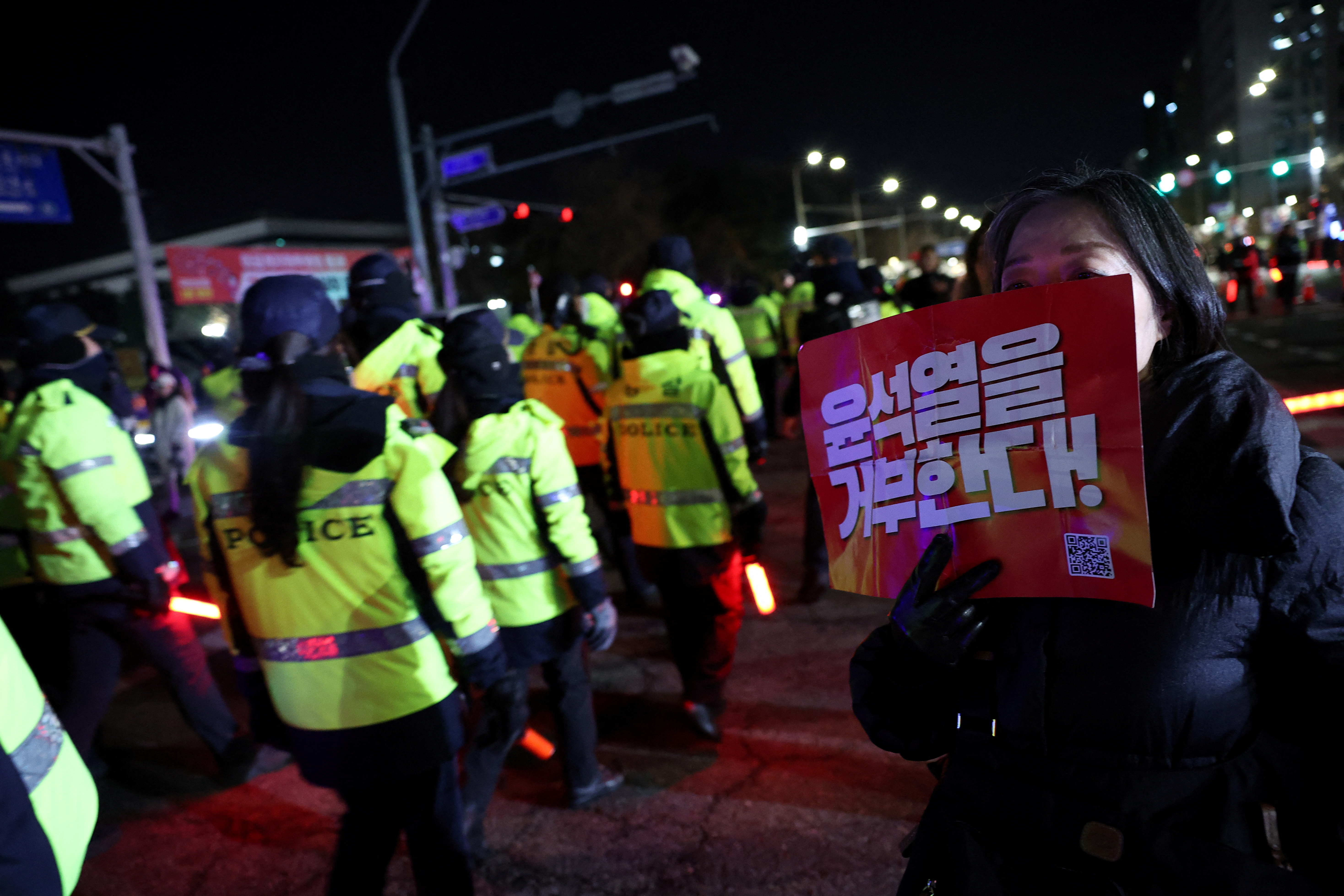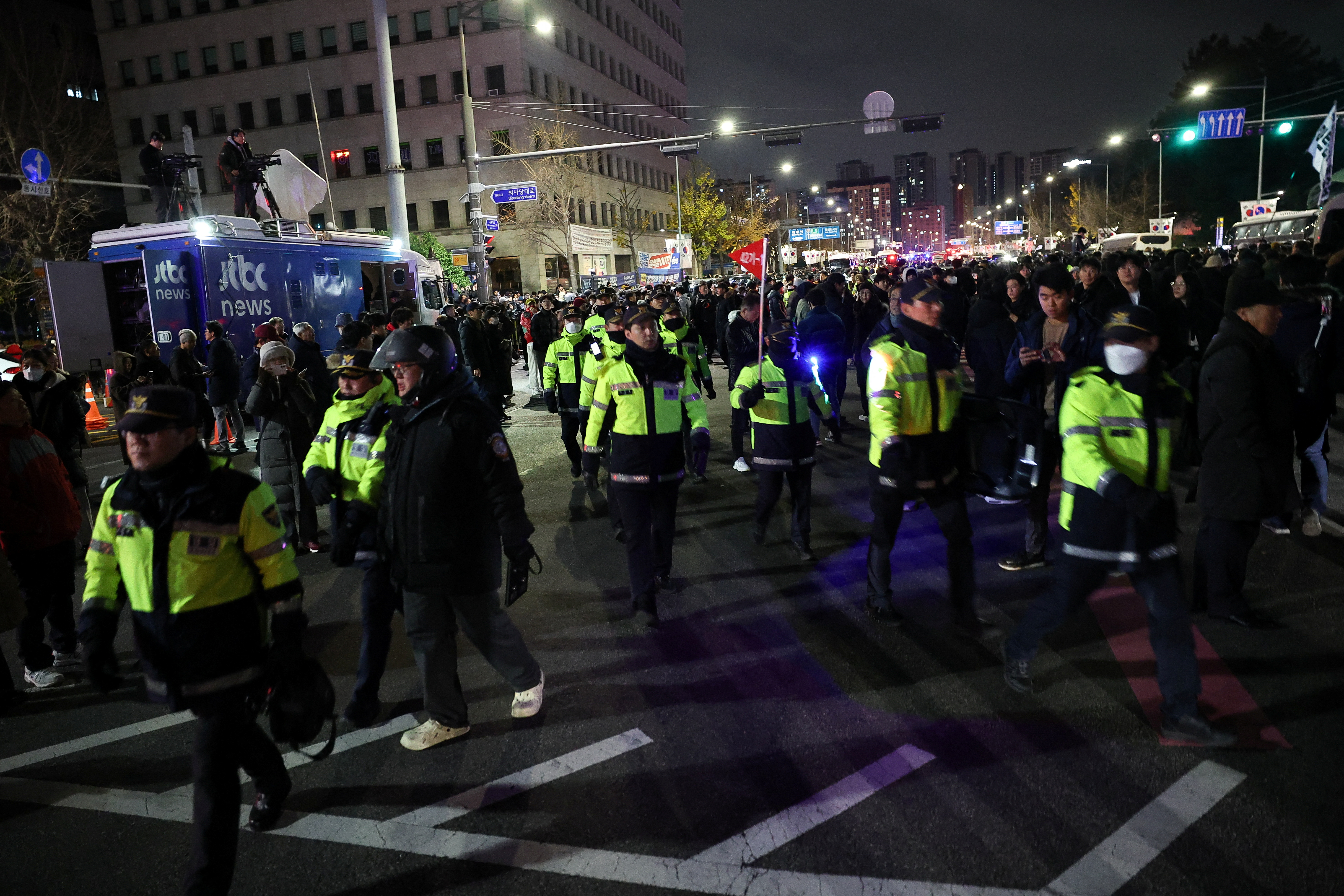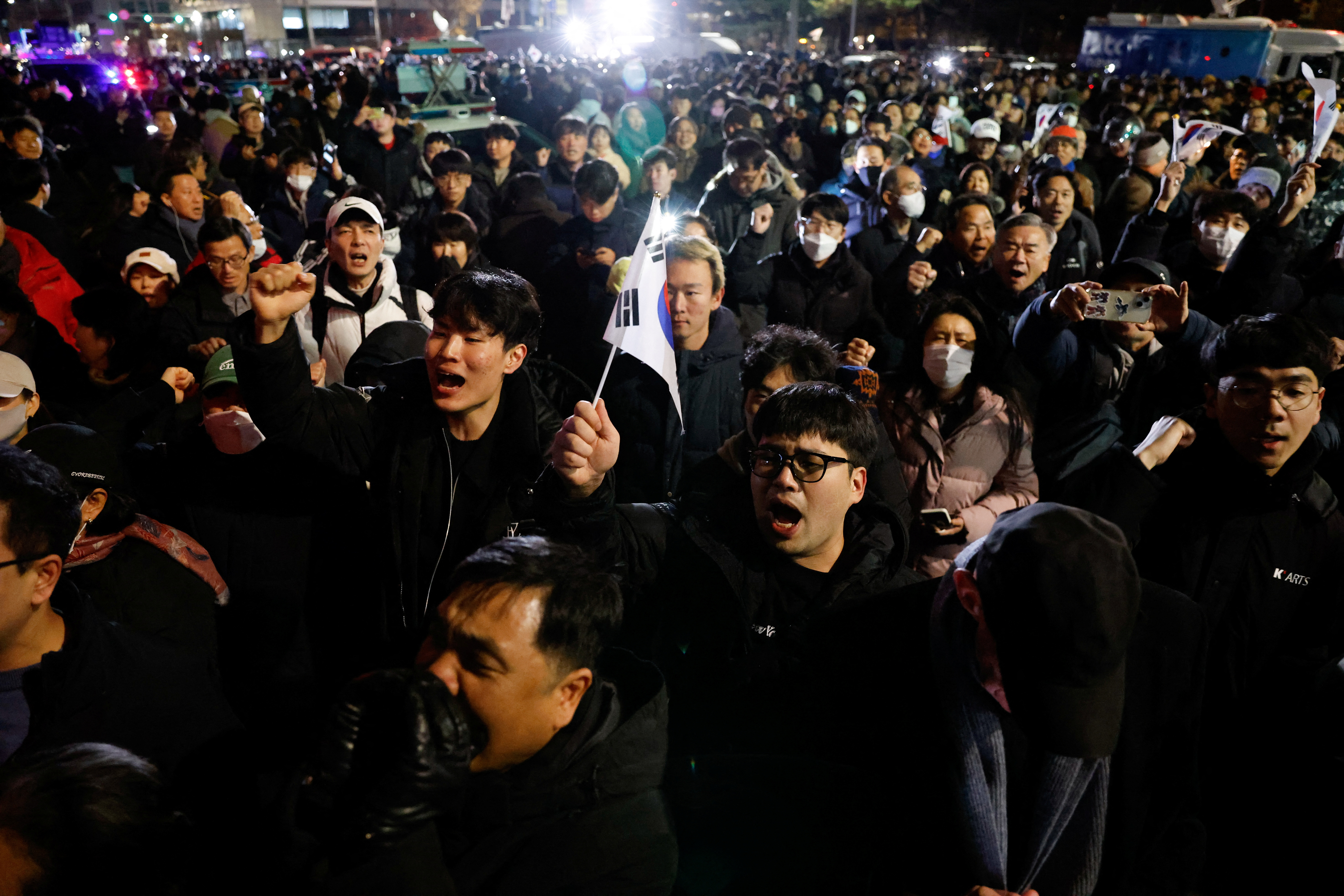 Οι διαμαρτυρίες μπροστά από την Εθνοσυνέλευση συνεχίζονται. Στα συνθήματά τους, οι διαδηλωτές απαιτούν τη σύλληψη του προέδρου Γιου, που ήταν αυτός που κήρυξε τον στρατιωτικό νόμο στη χώρα.