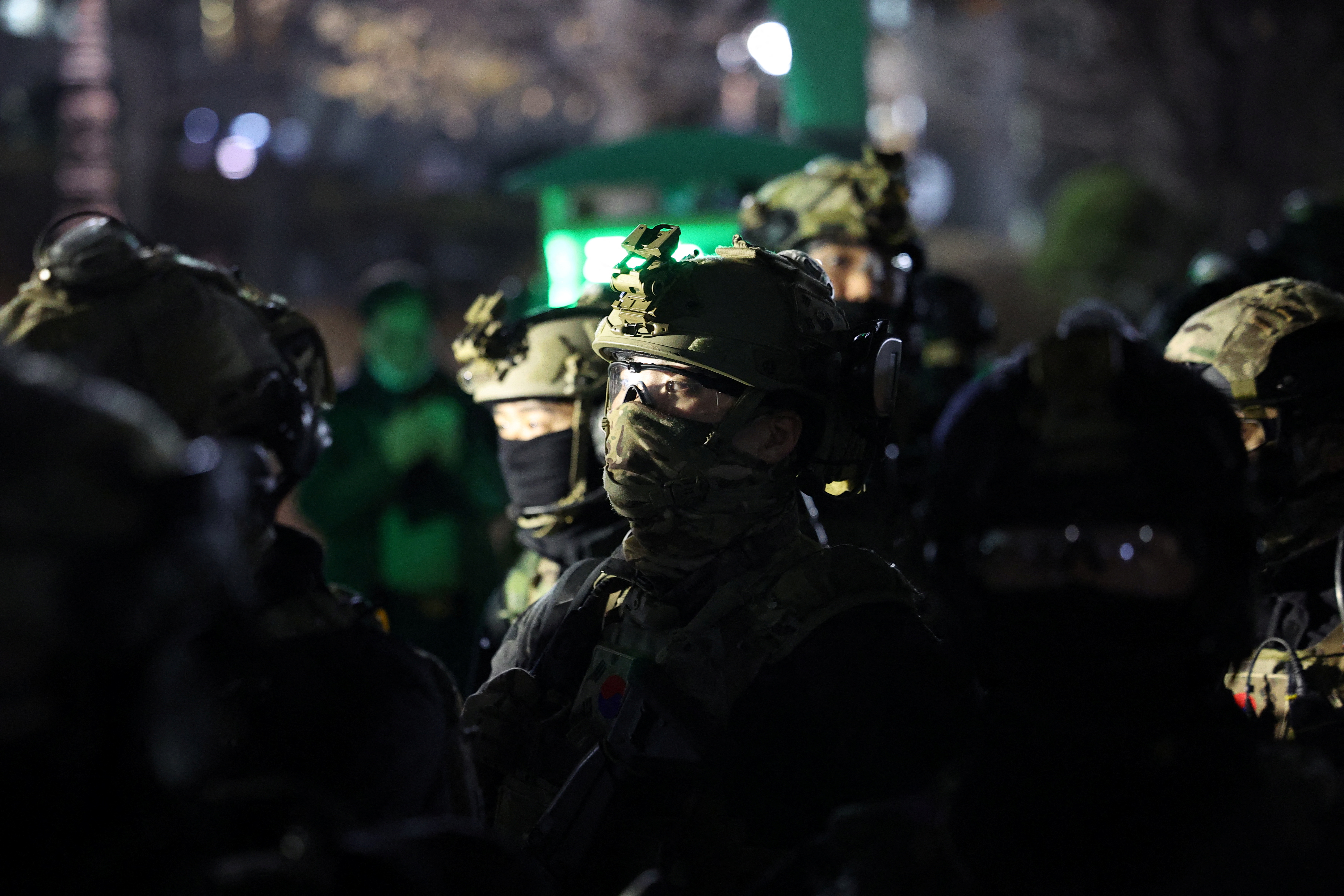 Μετά το ψήφισμα στο νοτιοκορεάτικο Κοινοβούλιο για «μπλόκο» στην εφαρμογή του στρατιωτικού νόμου, στρατιώτες άρχισαν να αποσύρονται από το κτίριο της Εθνοσυνέλευσης.