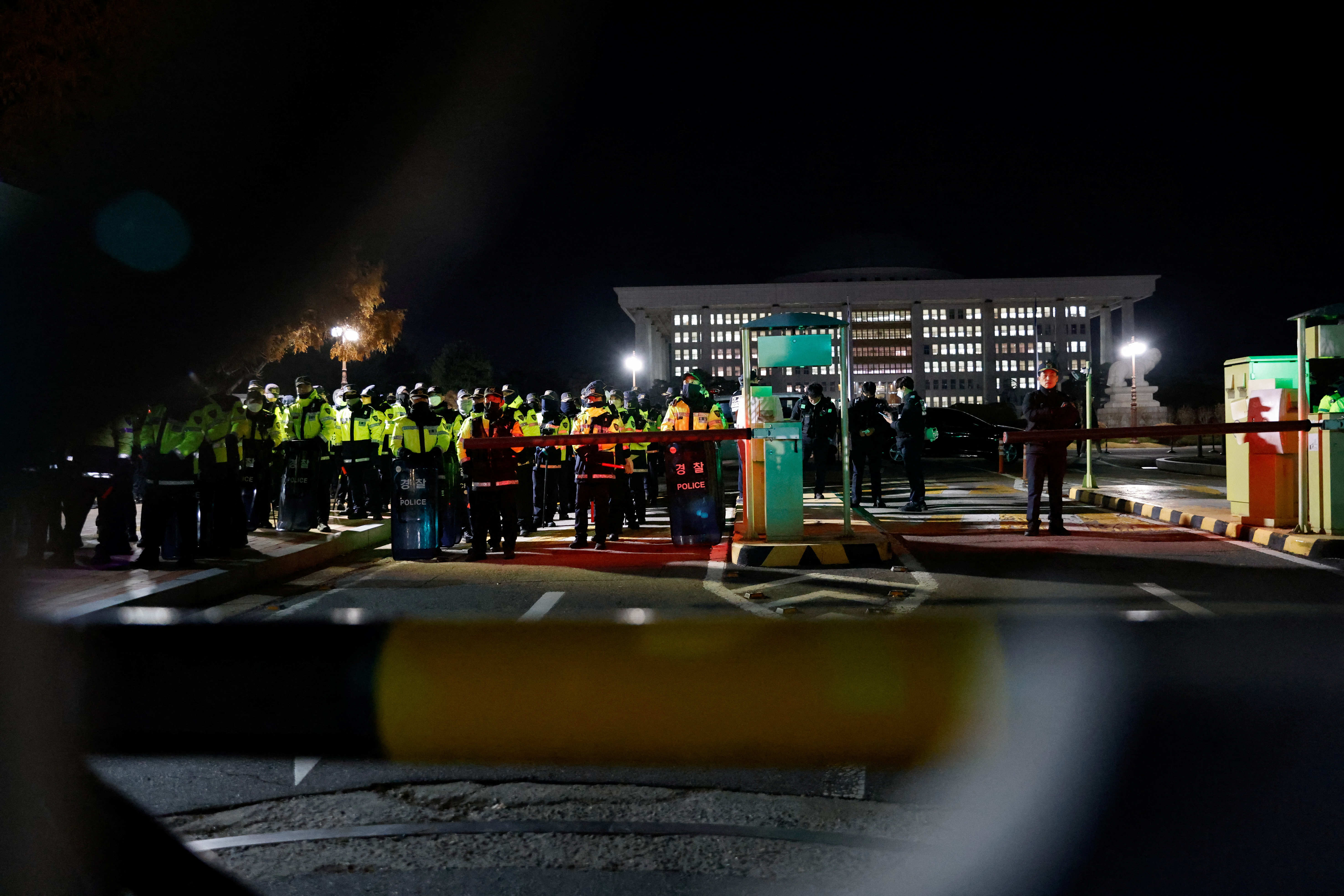 Αστυνομικοί έχουν κλείσει την είσοδο στην Εθνοσυνέλευση, στη Σεούλ