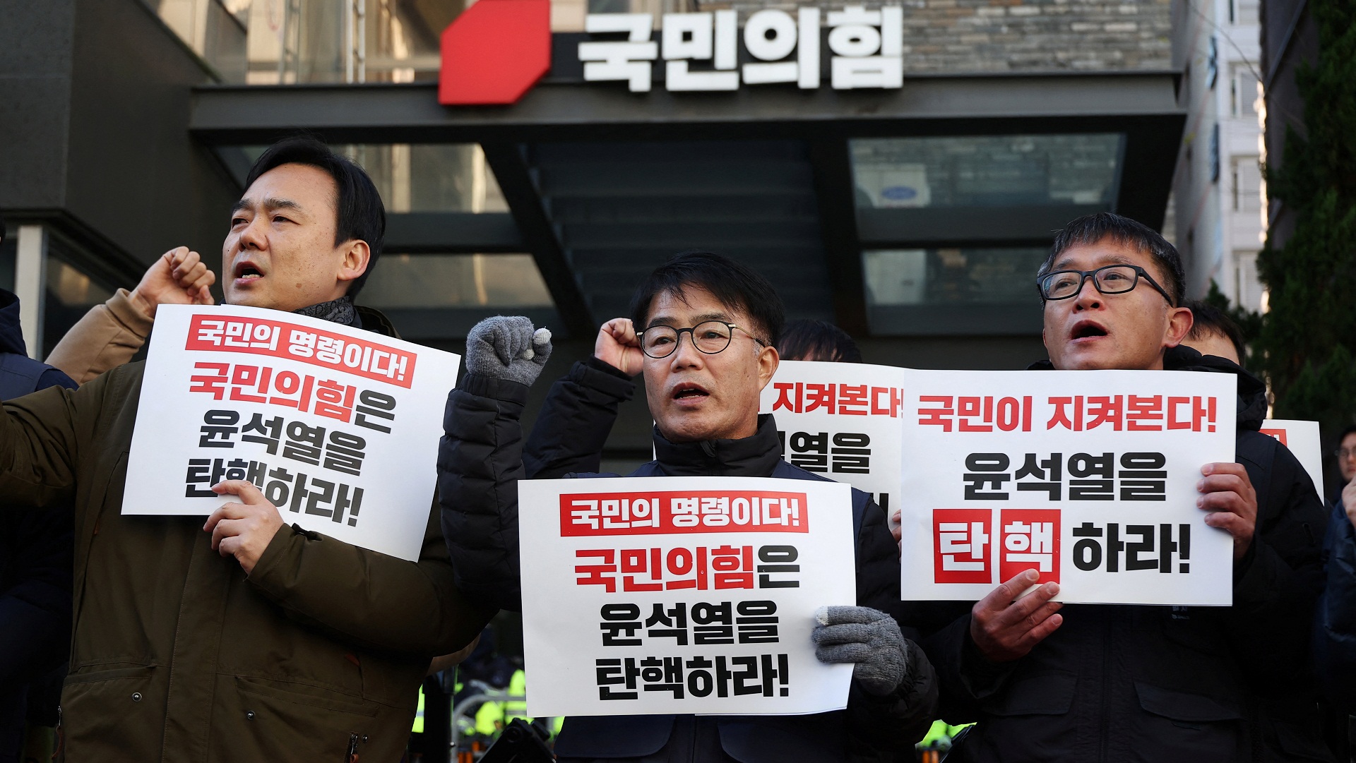 Το Δημοκρατικό Κόμμα (αξιωματική αντιπολίτευση) «ζητεί να διεξαχθεί ψηφοφορία το Σάββατο για την αποπομπή του Γιουν», σημείωσε το πρακτορείο. Το κόμμα αυτό θέλει να ασκηθεί και δίωξη για «ανταρσία» στον πρόεδρο, σε υπουργούς και αξιωματούχους.