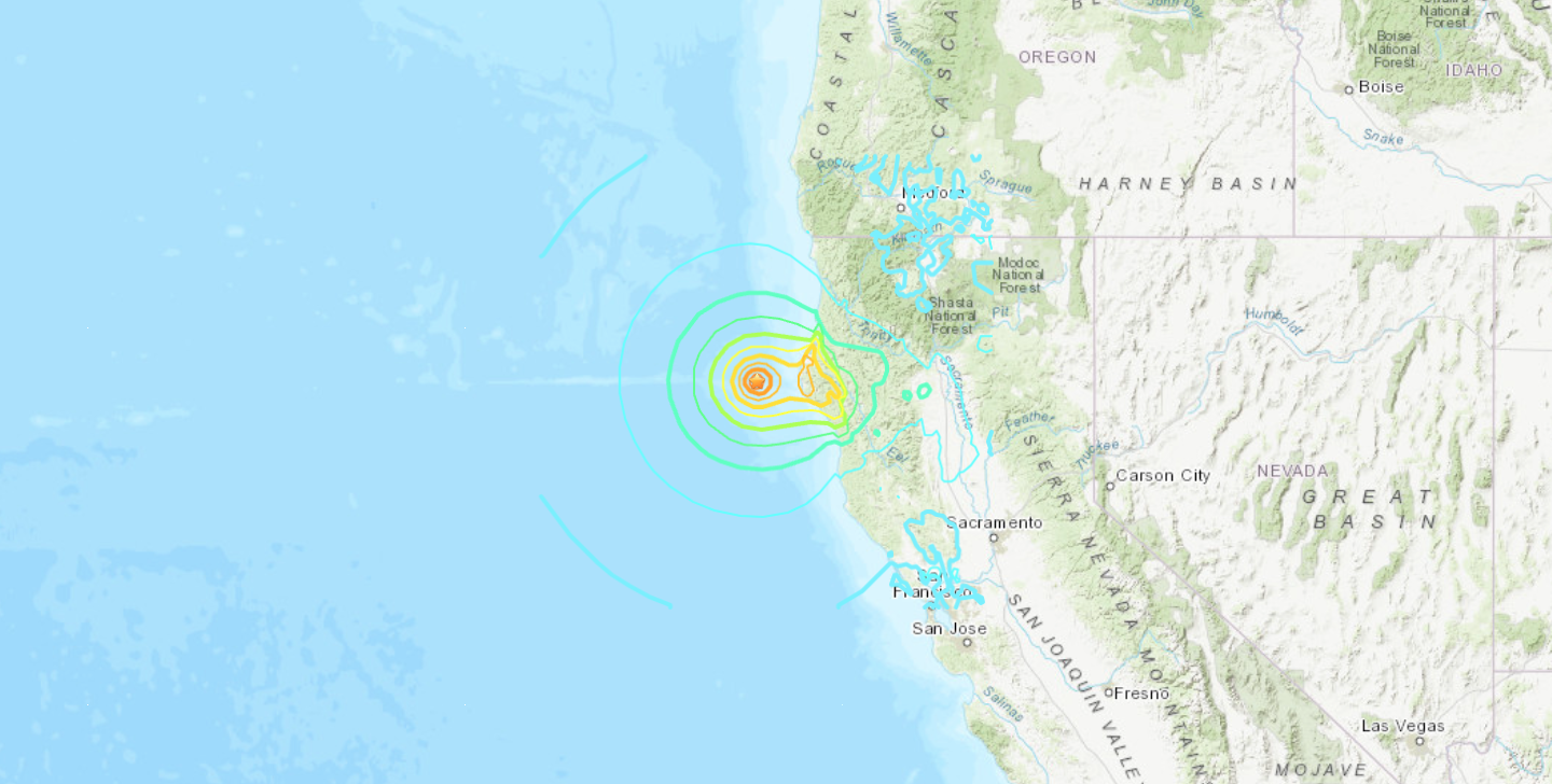 Το επίκεντρο της σεισμικής δόνησης εντοπίζεται 66 χιλιόμετρα από τις ακτές της βόρειας Καλιφόρνια, στην περιοχή Φρεντέιλ, ενώ το εστιακό βάθος υπολογίζεται στα 10 χιλιόμετρα.