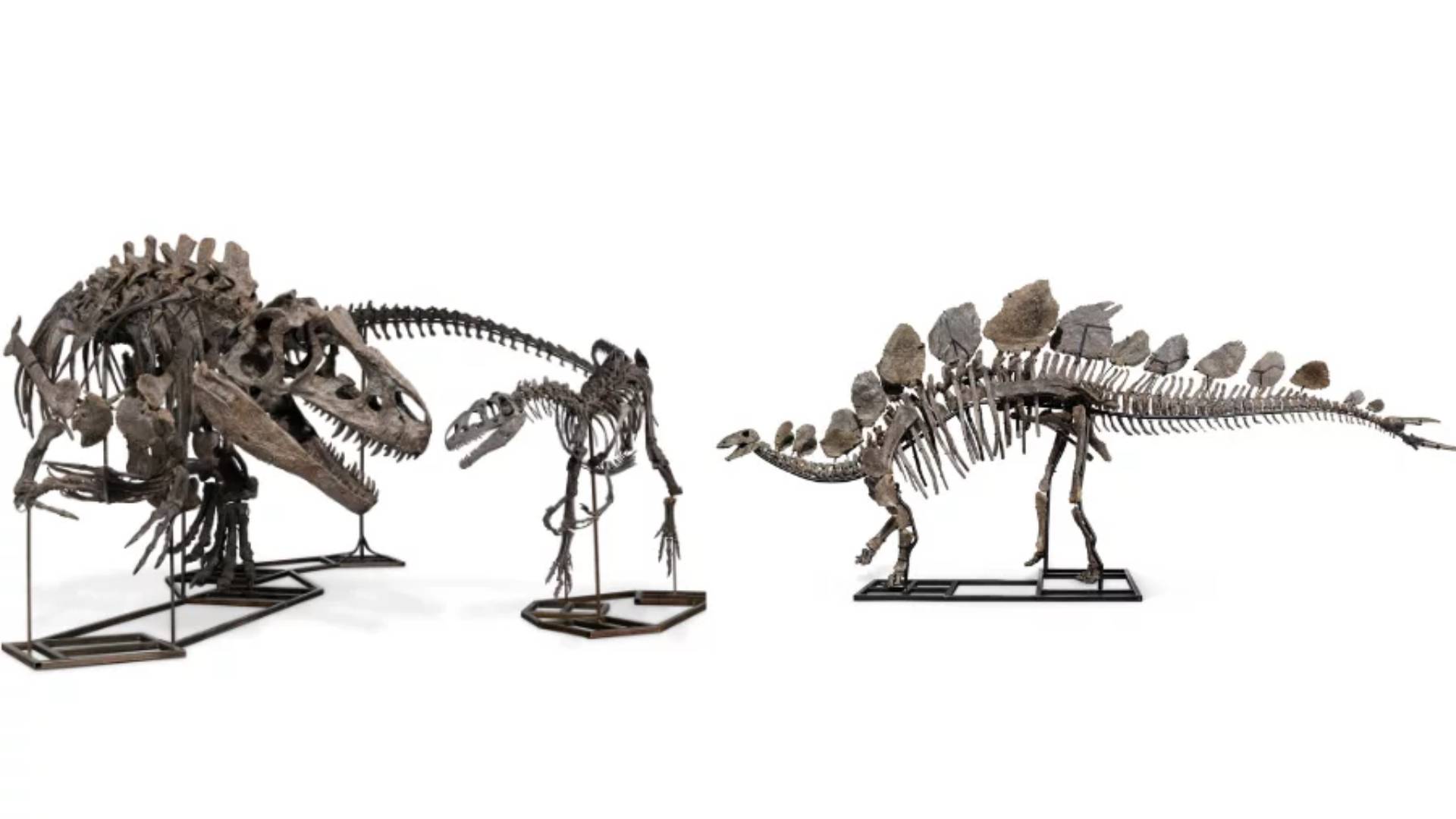 Πρόκειται για τα απολιθώματα ενός ενήλικα και ενός νεαρού Αλλόσαυρου (Allosaurus), που πωλούνται ως ζευγάρι, με την τιμή τους να εκτιμάται μεταξύ 5-8 εκατομμυρίων στερλινών και για ένα απολίθωμα Στεγόσαυρου (Stegosaurus) με την αξία του να υπολογίζεται μεταξύ 3 έως 5 εκατομμυρίων στερλινών.