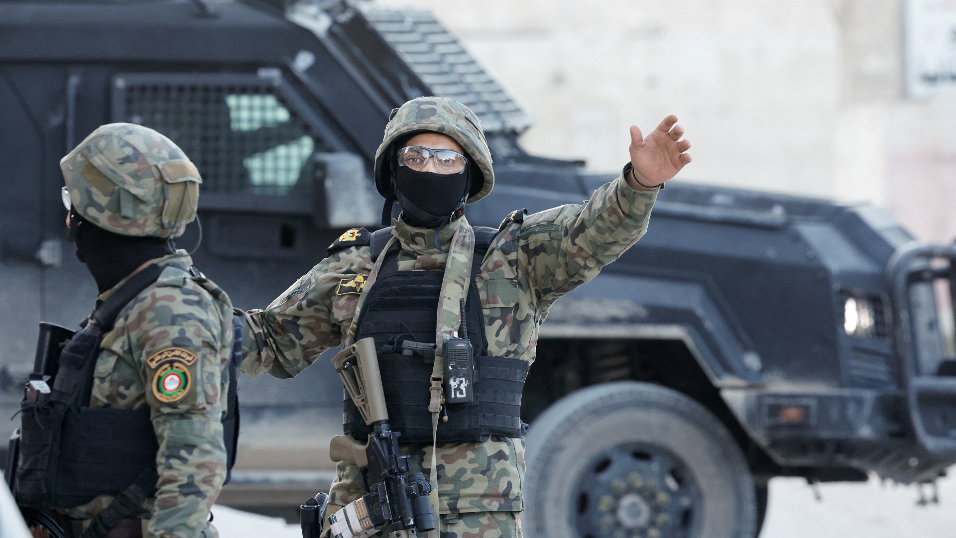 Οπτικό υλικό του Γαλλικού Πρακτορείου εικονίζει δυνάμεις ασφαλείας της Παλαιστινιακής Αρχής με τεθωρακισμένα καθώς είχαν αναπτυχθεί χθες στην Τζενίν και κοντά στον καταυλισμό προσφύγων ενώ στο υπόβαθρο ακούγονται πυρά.
