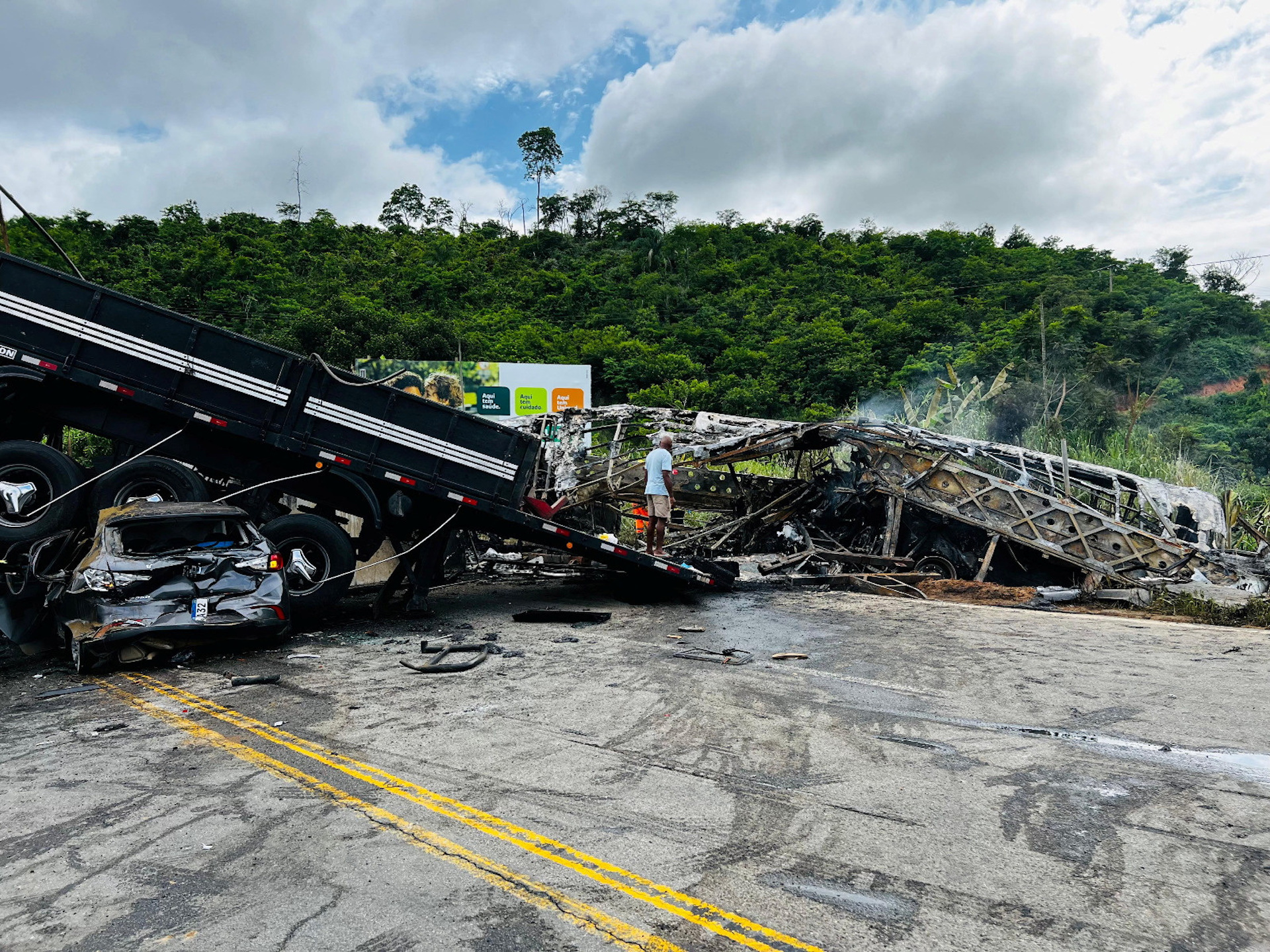 Η πυροσβεστική υπηρεσία ανακοίνωσε αρχικά ότι το λεωφορείο στο οποίο επέβαιναν 45 επιβάτες έπαθε λάστιχο με αποτέλεσμα ο οδηγός να χάσει τον έλεγχο και να πέσει πάνω σε ένα φορτηγό που μετέφερε πλακάκια το οποίο ερχόταν από την αντίθετη κατεύθυνση σε έναν κεντρικό αυτοκινητόδρομο κοντά στην πόλη Τεοφίλο Οτόνι στην πολιτεία Μίνας Ζεράις.