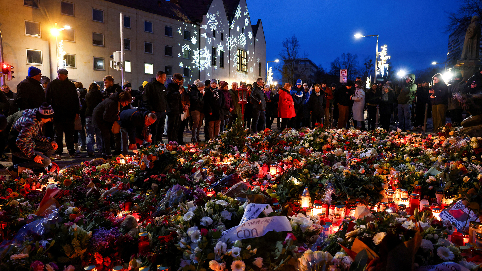 Νωρίτερα χτες, στον Καθεδρικό Ναό της πόλης, παρουσία του ομοσπονδιακού προέδρου Φρανκ-Βάλτερ Σταϊνμάιερ και του καγκελάριου Όλαφ Σολτς, πραγματοποιήθηκε σε ιδιαίτερα φορτισμένο κλίμα τελετή μνήμης για τα θύματα της χθεσινοβραδινής επίθεσης στην υπαίθρια χριστουγεννιάτικη αγορά.