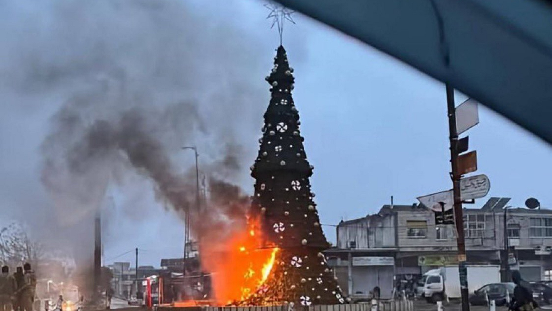 Israel backed rebels set Christmas tree on fire attacking Christianity. pic.twitter.com/ZAL3PmpKBr