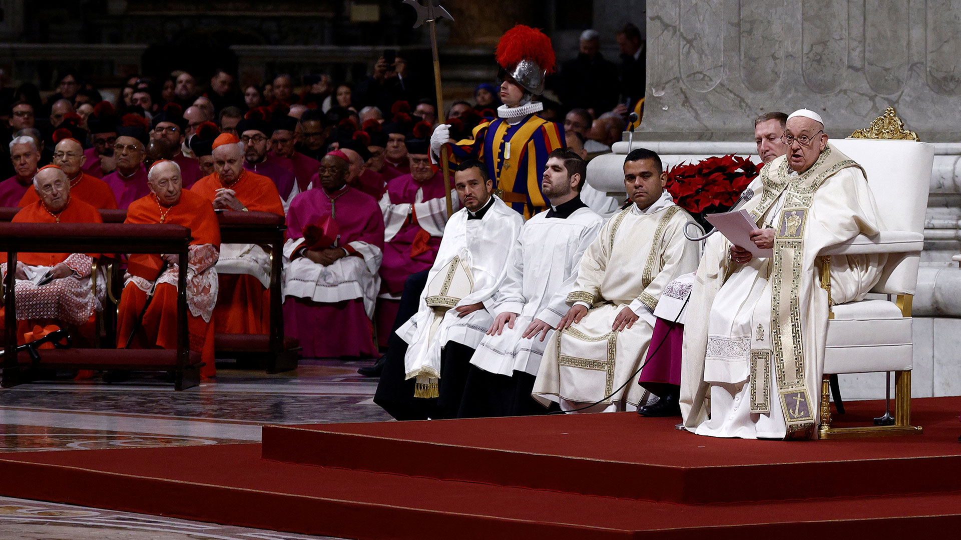 Το μήνυμα της ελπίδας και της αλλαγής κυριάρχησε στην ομιλία του Πάπα Φραγκίσκου την παραμονή των Χριστουγέννων στη Βασιλική του Αγίου Πέτρου στη Ρώμη.