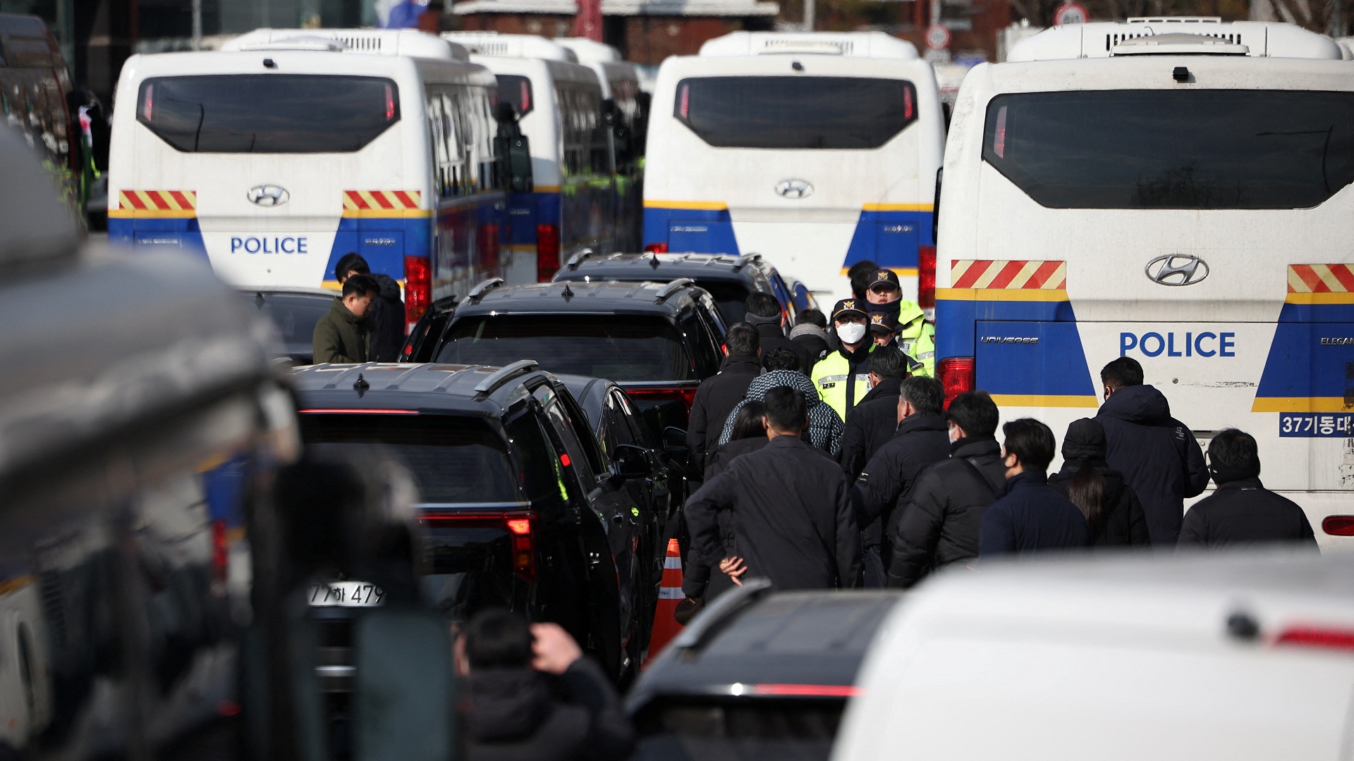 Σύμφωνα με το κορεατικό πρακτορείο, στην περιοχή όπου βρίσκεται η προεδρική κατοικία είχαν αναπτυχθεί κάπου 2.700 αστυνομικοί μετά τις συμπλοκές οπαδών και πολέμιων του παυθέντος προέδρου το βράδυ της προηγουμένης.
