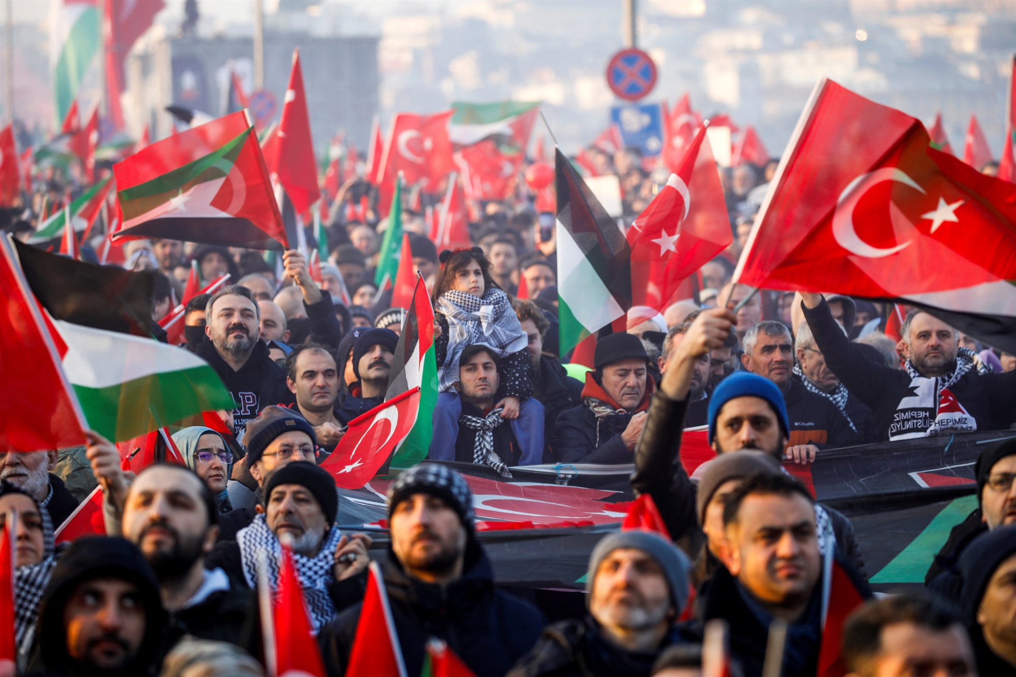 Την 1η Ιανουαρίου ο γιος του Ερντογάν, ο Μπιλάλ Ερντογάν, σε συγκέντρωση που διοργάνωσε με το ίδρυμά του TURGEV στην Κωνσταντινούπολη για να καταδικάσει το Ισραήλ για όσα έχει κάνει στη Γάζα, δήλωσε ότι «η υπόσχεση του Θεού στους καταπιεσμένους θα γίνει πραγματικότητα στην Παλαιστίνη, όπως έγινε και στη Συρία. Οπως η Αγία Σοφία ελευθερώθηκε από τις αλυσίδες της και το τζαμί των Ομαγιάδων (στη Δαμασκό) απελευθερώθηκε από την τυραννία ενός αιματηρού δικτάτορα, έτσι και ο ήλιος της ελευθερίας και της δικαιοσύνης θα ανατείλει σύντομα και στο τέμενος του Αλ Ακσα (στην Ιερουσαλήμ). Από την Κωνσταντινούπολη στέλνουμε τους χαιρετισμούς μας στα αδέλφια μας τους Παλαιστινίους. Συγχαίρουμε με όλη την καρδιά μας τους μουτζαχεντίν της Συρίας».