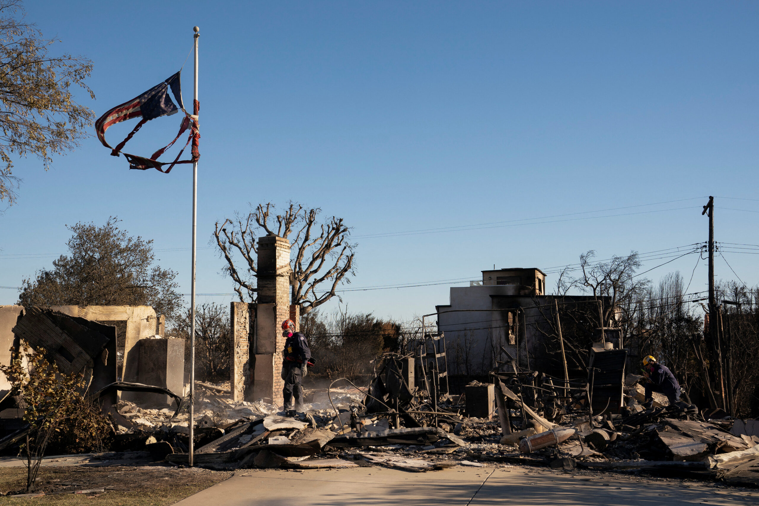 «Ελπίζω πραγματικά να έφεραν το δικό τους νερό», λέει ένας Καλιφορνέζος δίπλα στα αποκαΐδια του Πασίφικ Πάλισεϊντς. «Θα είναι πολύ ενδιαφέρον να μάθουμε αν χρησιμοποίησαν τους (δημόσιους) πυροσβεστικούς κρουνούς»…