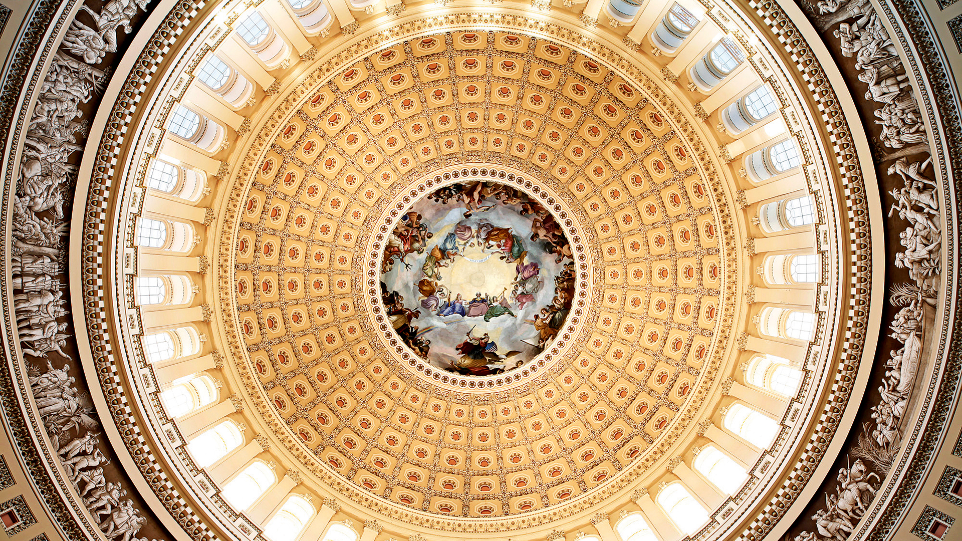 Στον θόλο της Ροτόντας, η «Αποθέωση του Ουάσιγκτον», ζωγραφισμένη το 1865, είναι μια φαντασμαγορική προσπάθεια να αποδοθεί η αμερικανική αυτοπεποίθηση σε στυλ… θεϊκής ανύψωσης. Η νωπογραφία αυτή απεικονίζει τον πρώτο πρόεδρο της χώρας να αναδύεται προς τους ουρανούς, περιβαλλόμενος από συμβολικές μορφές, όπως η Ελευθερία και η Νίκη.