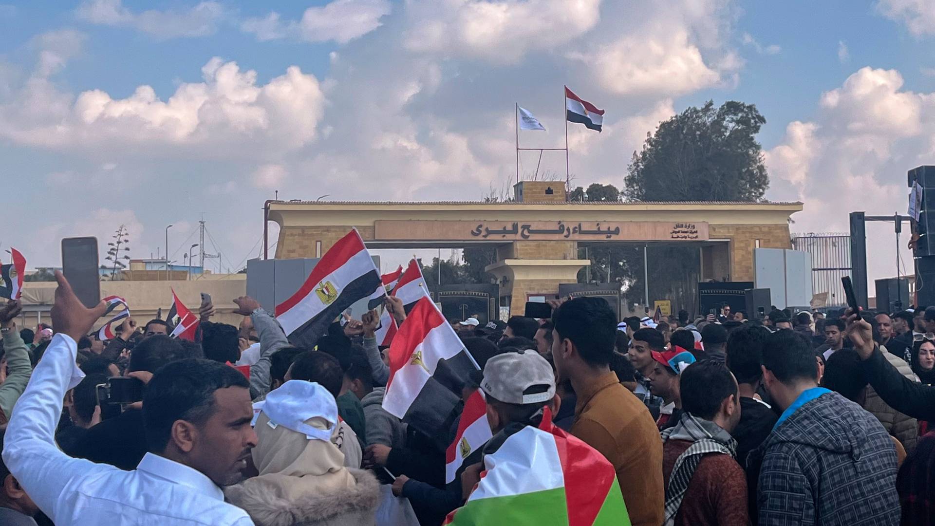 Οι διαδηλωτές φώναξαν συνθήματα όπως «Ζήτω η Αίγυπτος» και κυμάτιζαν αιγυπτιακές και παλαιστινιακές σημαίες.