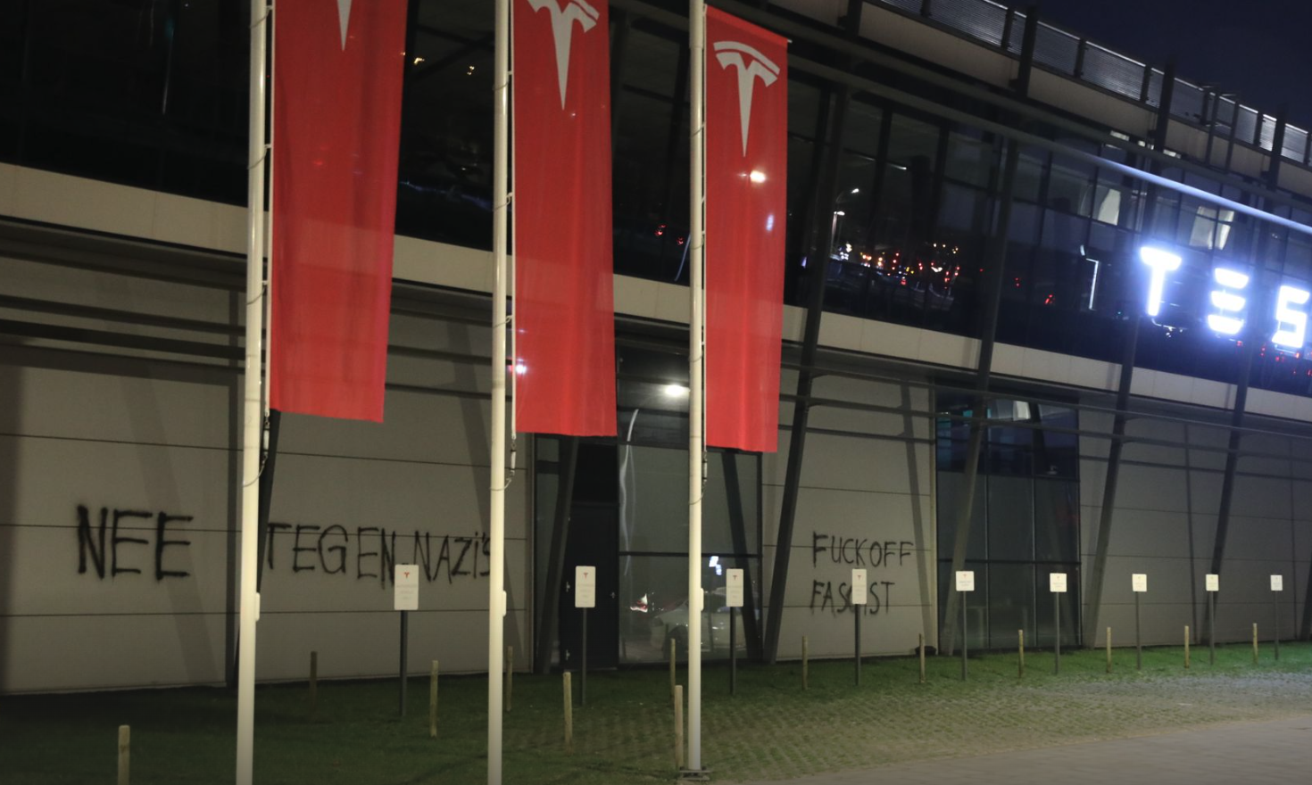 Στόχος βανδαλισμού έγινε έκθεση αυτοκινήτων της Tesla στη Χάγη, καθώς άγνωστοι έβαψαν με σπρέι σβάστικες και αντιφασιστικά συνθήματα.