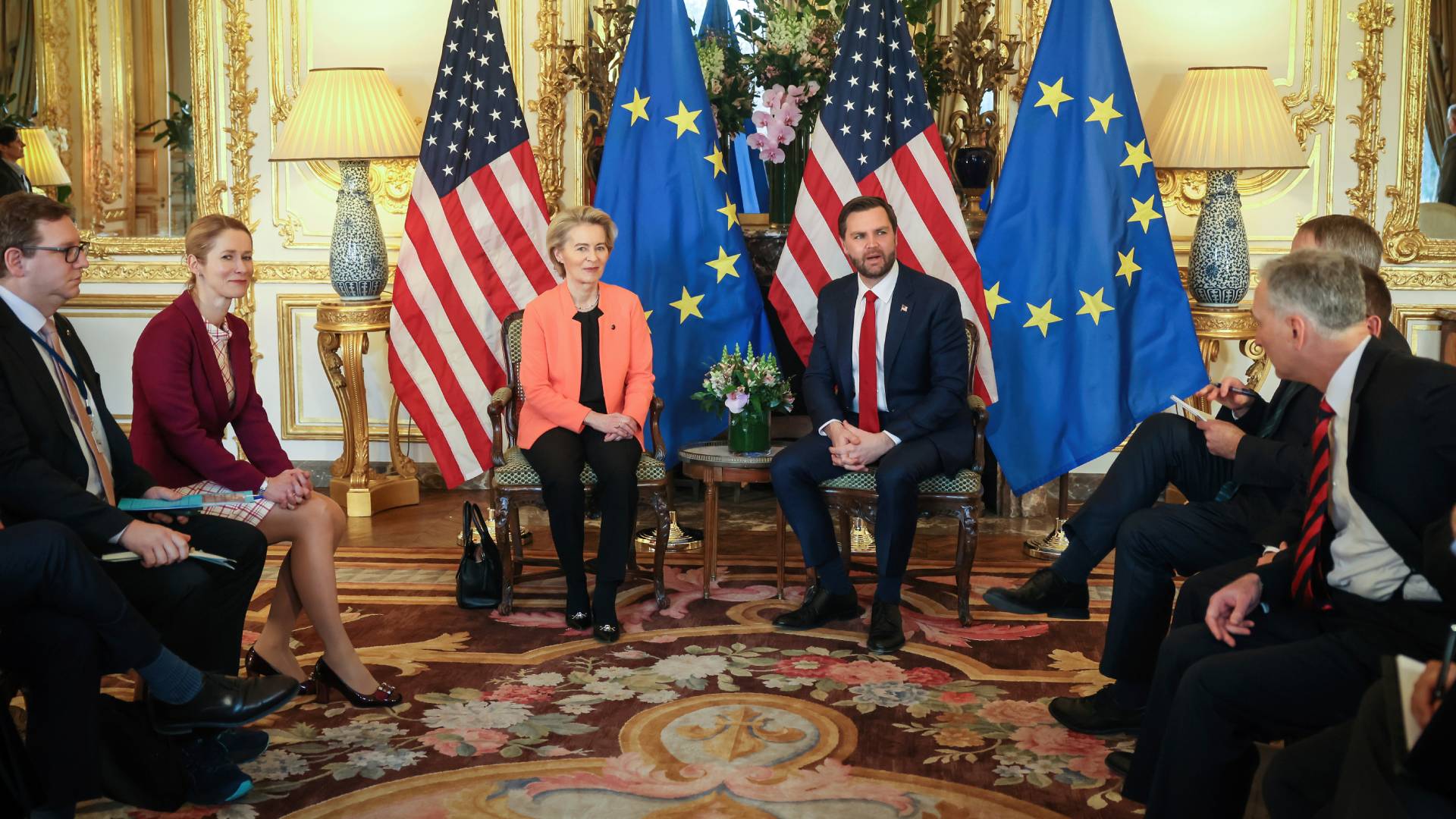 Για «καλή συζήτηση για τις κοινές προκλήσεις μας ως σύμμαχοι» έκανε λόγο η πρόεδρος της Κομισιόν, Ούρσουλα φον ντερ Λάιεν, αμέσως μετά την πρώτη της συνάντηση με τον Αμερικανό αντιπρόεδρο, Τζέι Ντι Βανς, στο Παρίσι.