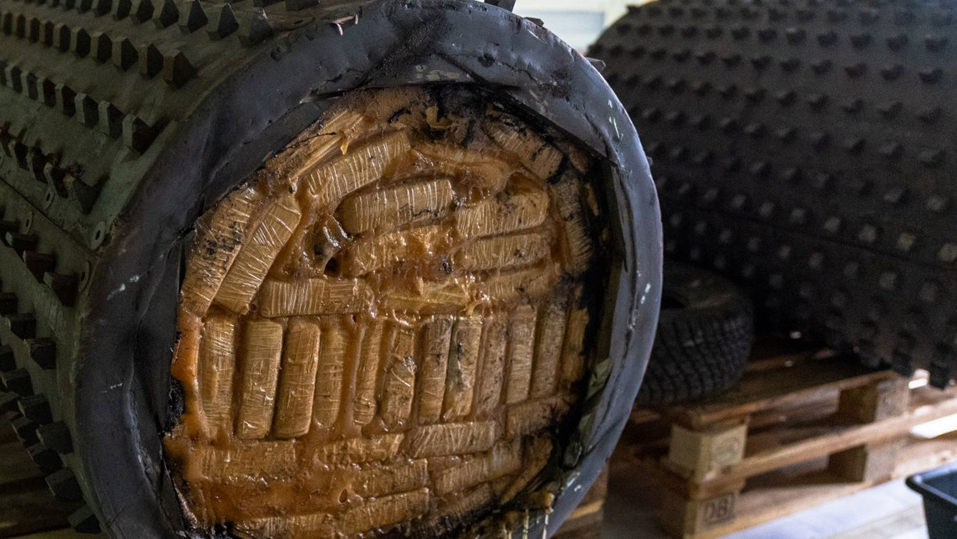 Κατόπιν δικαστικής εντολής, κατασχέθηκε και αποσυναρμολογήθηκε. Μέσα σε τρεις κυλίνδρους συμπίεσης βρέθηκαν συσκευασίες κοκαΐνης, συνολικού βάρους 889 κιλών και εκτιμώμενης αξίας «μεταξύ 80 και 160 εκατ. ευρώ», σύμφωνα με την εισαγγελία.