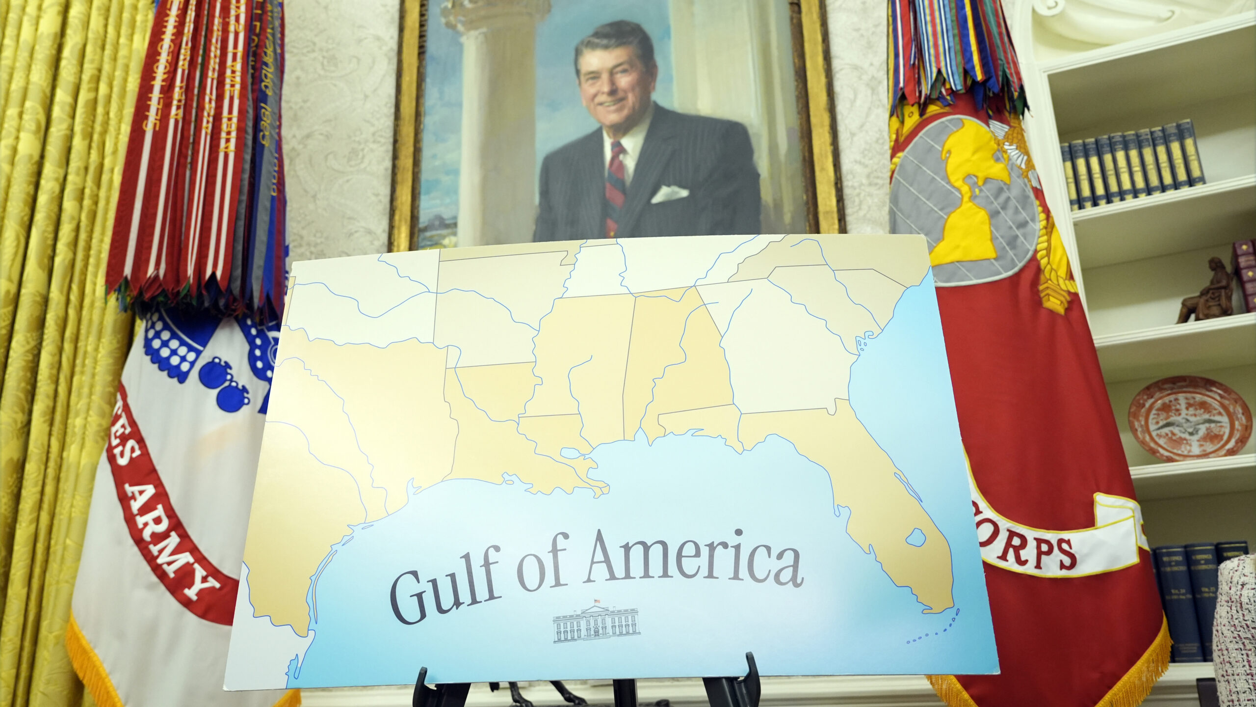 Στο Οβάλ Γραφείο, όπου ο Ντόναλντ Τραμπ υποδέχεται καθημερινά τον Τύπο, υπάρχει ένας χάρτης με την εν λόγω υδάτινη έκταση νοτιοανατολικά των ΗΠΑ και τις λέξεις «Κόλπος της Αμερικής».
