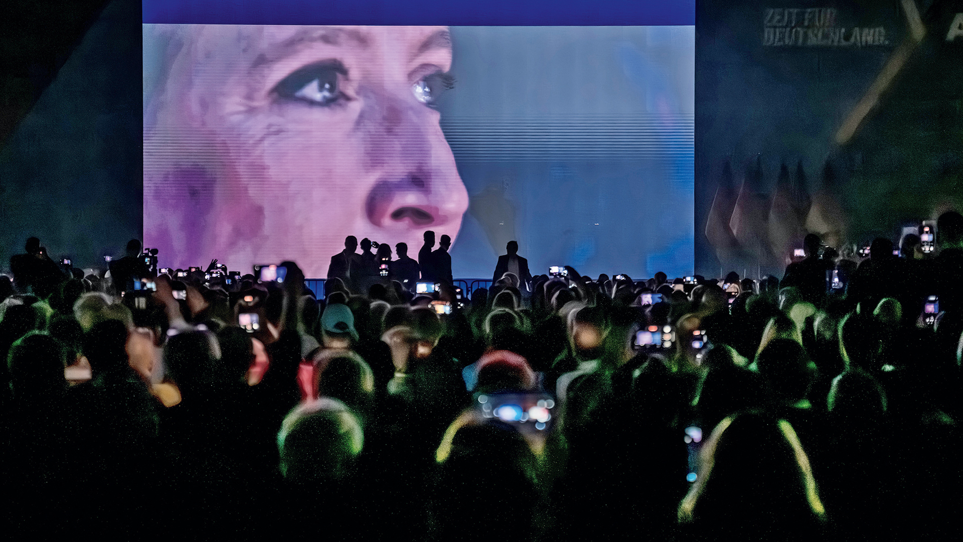 Στο Νόιενχαγκεν μπάι Μπερλίν της πρώην ανατολικής Γερμανίας, που απέχει 20 λεπτά από το εργοστάσιο της Tesla κι έχει κατά κεφαλήν εισόδημα υψηλότερο από εκείνο του Βερολίνου, πραγματοποίησε μία από τις κεντρικές προεκλογικές συγκεντρώσεις της η AfD. Μετά το τραγούδι «Η Αλις (Βάιντελ, ηγέτις του κόμματος) για τη Γερμανία» στο οποίο όλοι σηκώνονται όρθιοι και χτυπούν παλαμάκια ρυθμικά, γίνεται ανάκρουση του εθνικού ύμνου. Προσπαθώ να ακούσω αν κάποιο από τα αγόρια με τα ξυρισμένα κεφάλια που στέκονται μπροστά μου τραγουδά τους απαγορευμένους στίχους «η Γερμανία πάνω από όλα». Και όμως, η AfD δεν είναι απλώς ένα ενσωματωμένο στο πολιτικό σύστημα κόμμα, που σήμερα αναμενόταν να αναδειχθεί δεύτερη μεγαλύτερη δύναμη. Καθορίζει τον δημόσιο διάλογο κι ευθύνεται για τη μετατόπιση της προεκλογικής αντιπαράθεσης προς τα δεξιά.