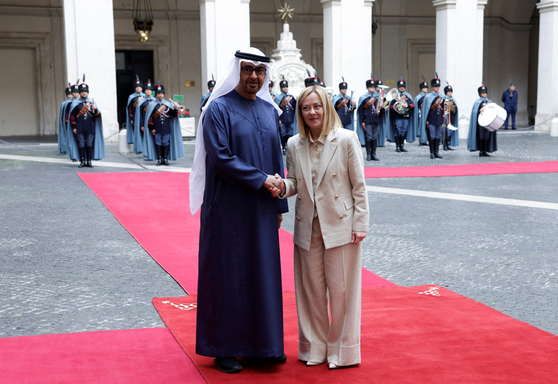 Η Ιταλίδα πρωθυπουργός Τζόρτζια Μελόνι υποδέχθηκε αυτήν την εβδομάδα στη Ρώμη τον Εμιρατινό ηγέτη σεΐχη Μοχάμεντ μπιν Ζαγέντ, ενώ στα τέλη Ιανουαρίου είχε η ίδια μεταβεί στη Σαουδική Αραβία για επαφές με τον Σαουδάραβα πρίγκιπα διάδοχο Μοχάμεντ μπιν Σαλμάν.