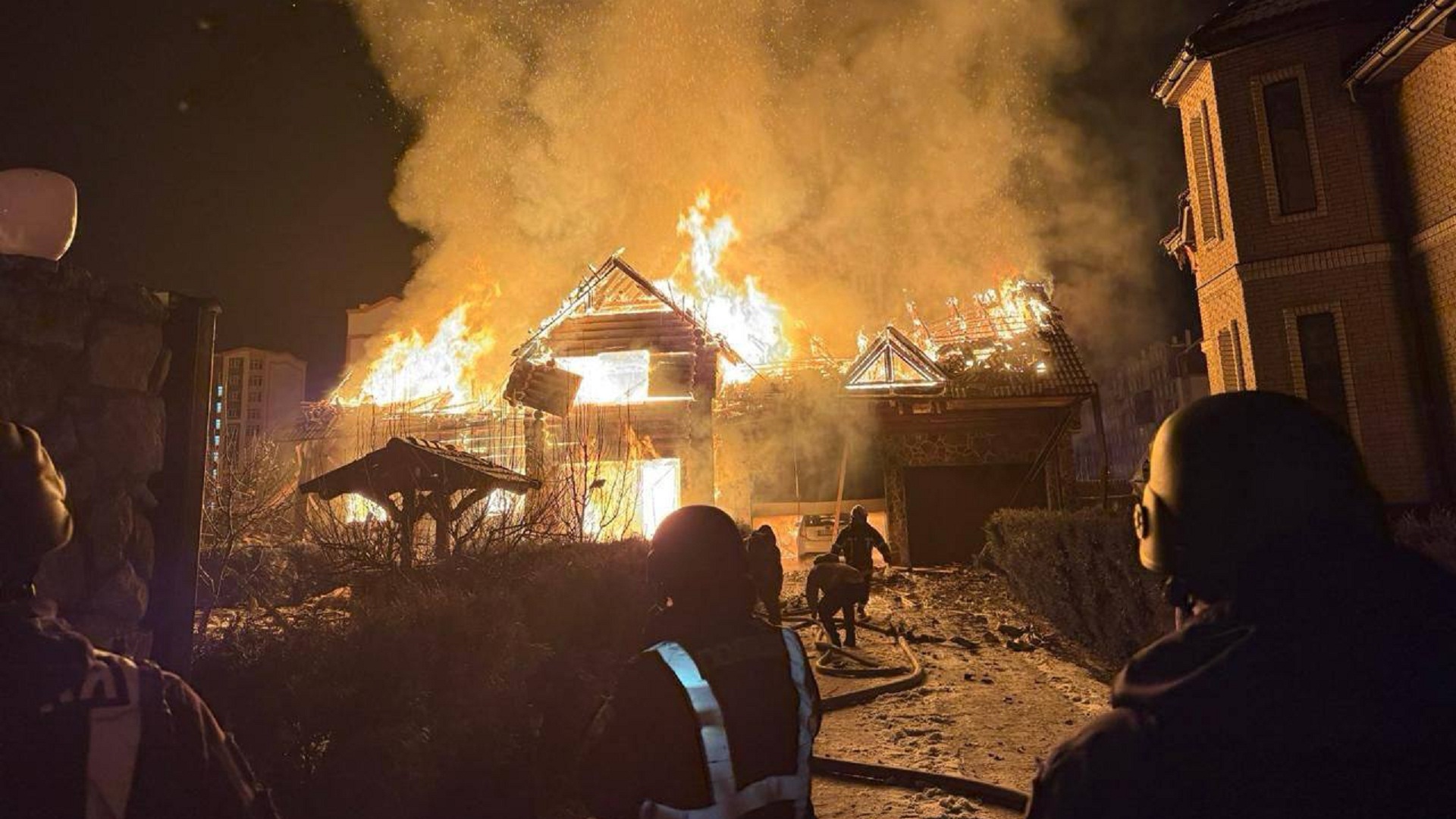 Πρόσθεσε ότι η επίθεση προκάλεσε πυρκαγιά σε διώροφη κατοικία στην περιοχή Μπουχάνσκι. Κατά τη διάρκεια κατάσβεσης της φωτιάς οι πυροσβέστες εντόπισαν τη σορό νεκρού άνδρα.